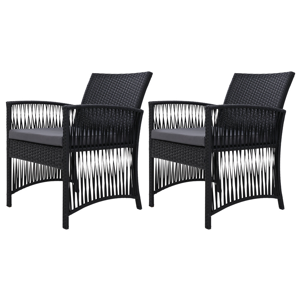 Outdoor Furniture Set of 2 Dining Chairs Wicker Garden Patio Cushion Black Gardeon
