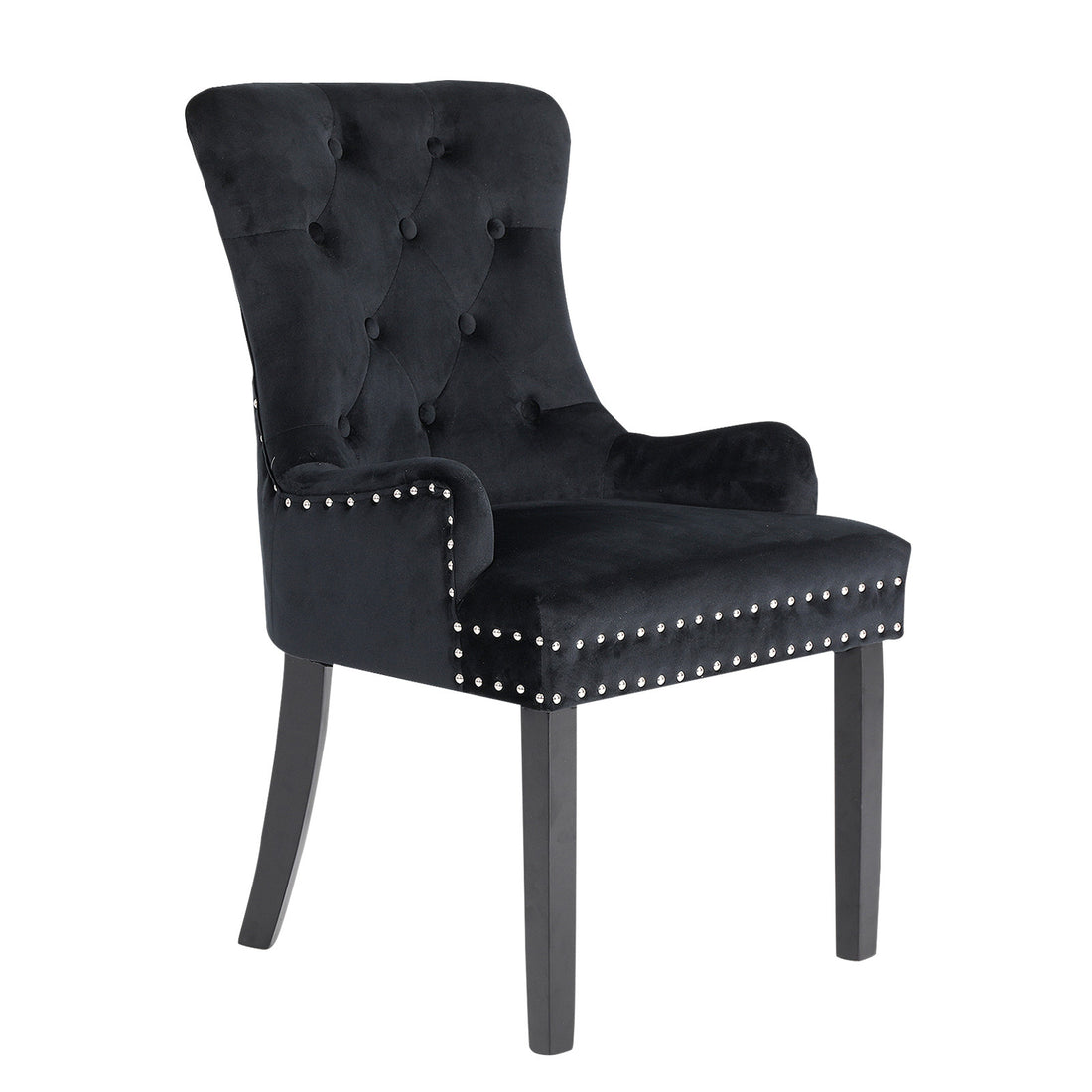 La Bella Black French Provincial Dining Chair Ring Studded Lisse Velvet Rubberwood