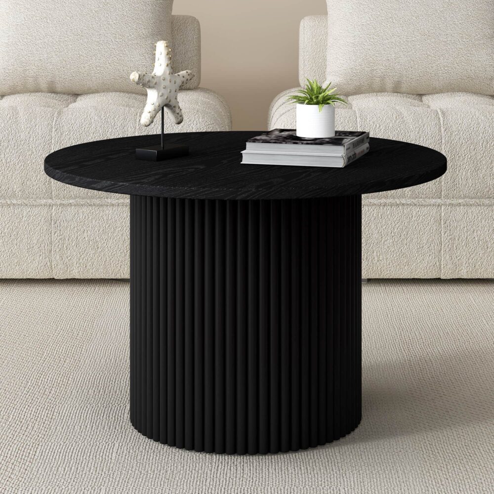 Luxe Black Ribbed Texture Wooden Coffee Table