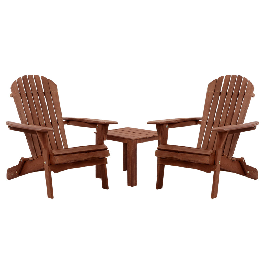 Gardeon 3PC Outdoor Setting Beach Chairs Table Wooden Adirondack Lounge Garden