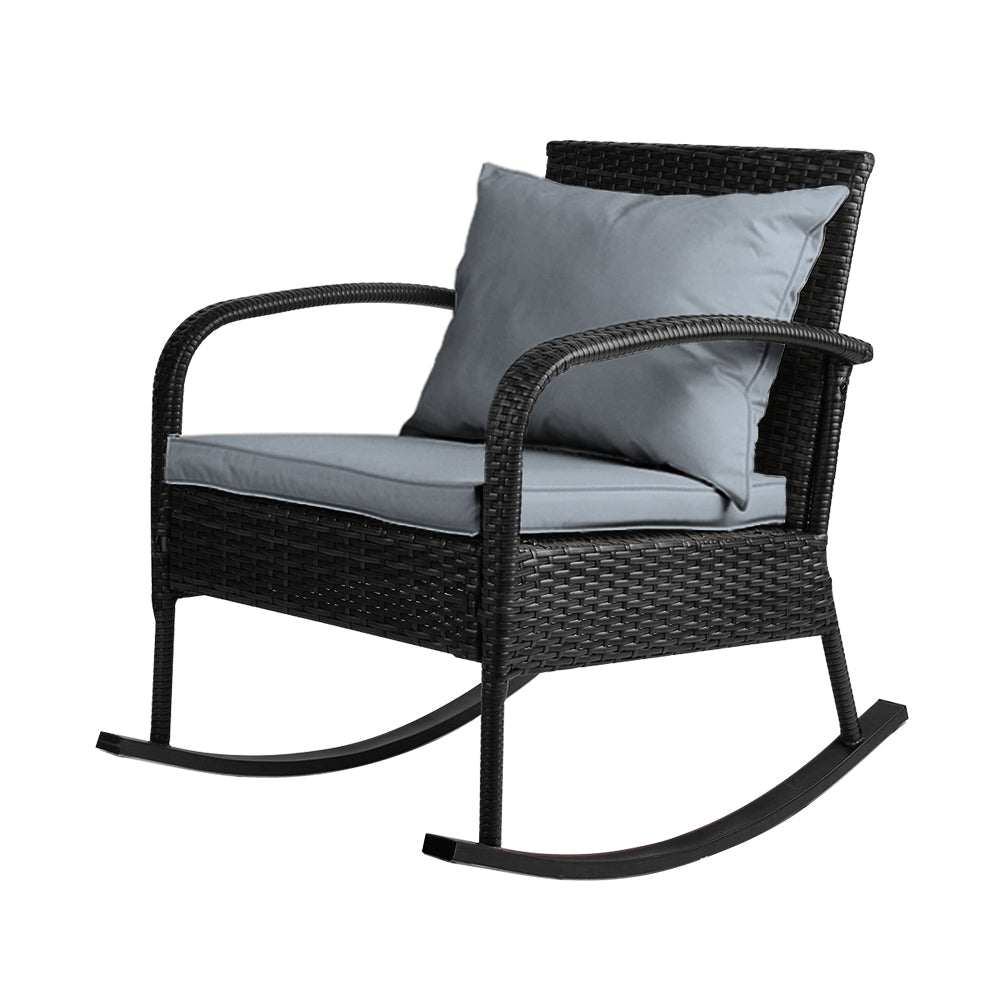 Gardeon Outdoor Furniture Rocking Chair Wicker Garden Patio Lounge Setting Black