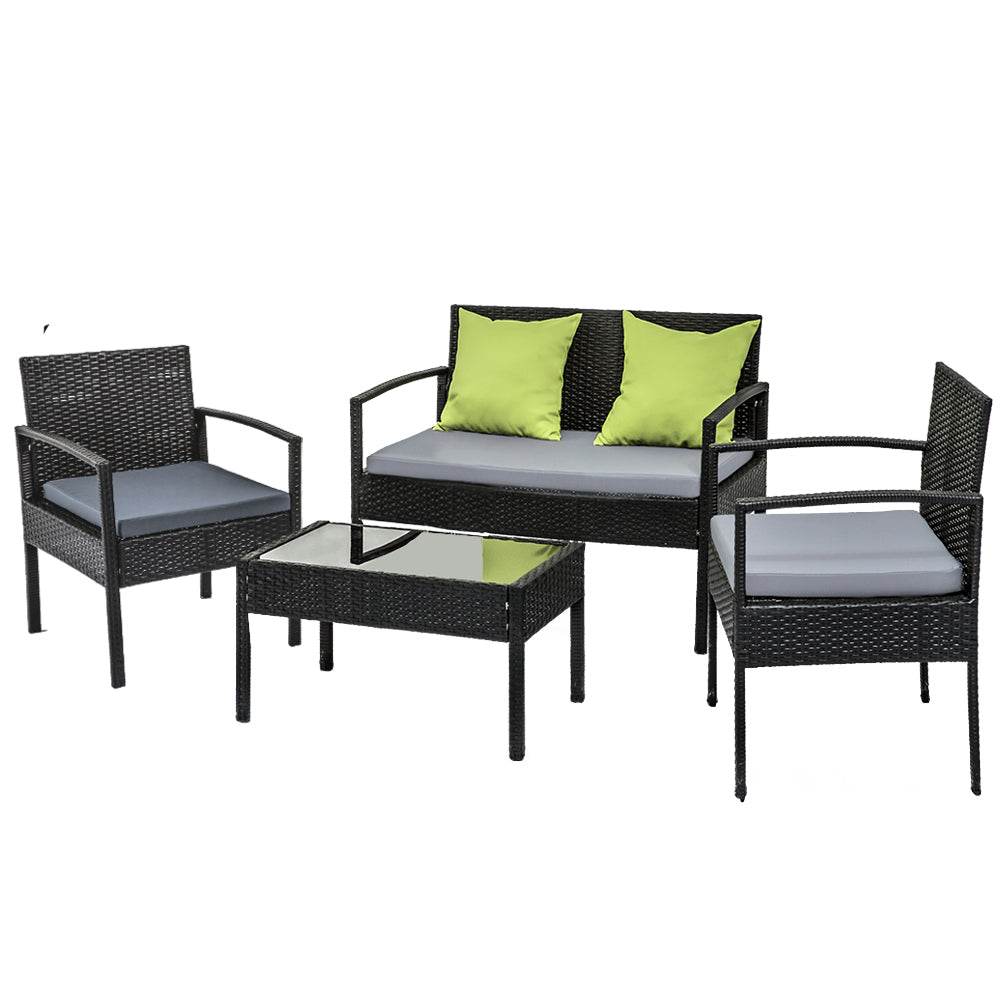 4 Seater Sofa Set Outdoor Furniture Lounge Setting Wicker Chairs Table Rattan Lounger Bistro Patio Garden Cushions Black