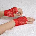 1 Pair Fishnet Gloves Fingerless Wrist Length 70s 80s Costume Party Dance - Red