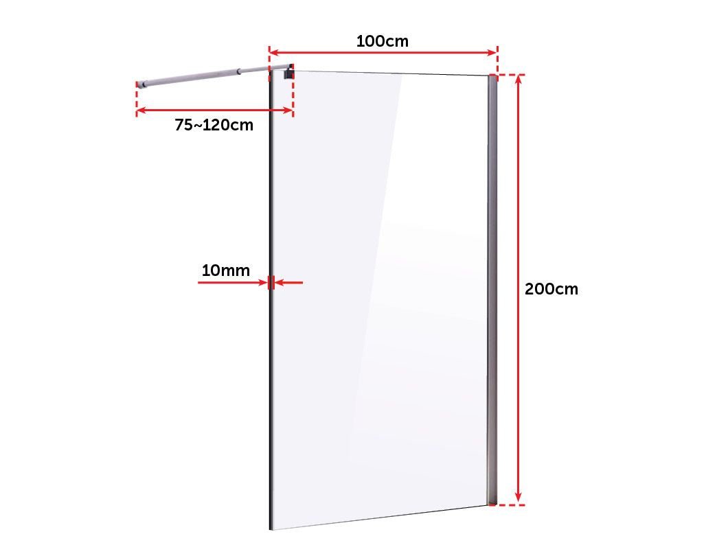 This single-panel screen is crafted from a 10mm-thick toughened safety glass. In addition to its crystal clarity, this glass is specifically designed to ensure absolute safety in the bathroom, meeting all applicable Australian Standards. A wall bracket (U-Channel) and retractable aluminium stabilizing pole are included for a straightforward, hassle-free installation. This panel measures 1000mm wide by 2000mm high.
