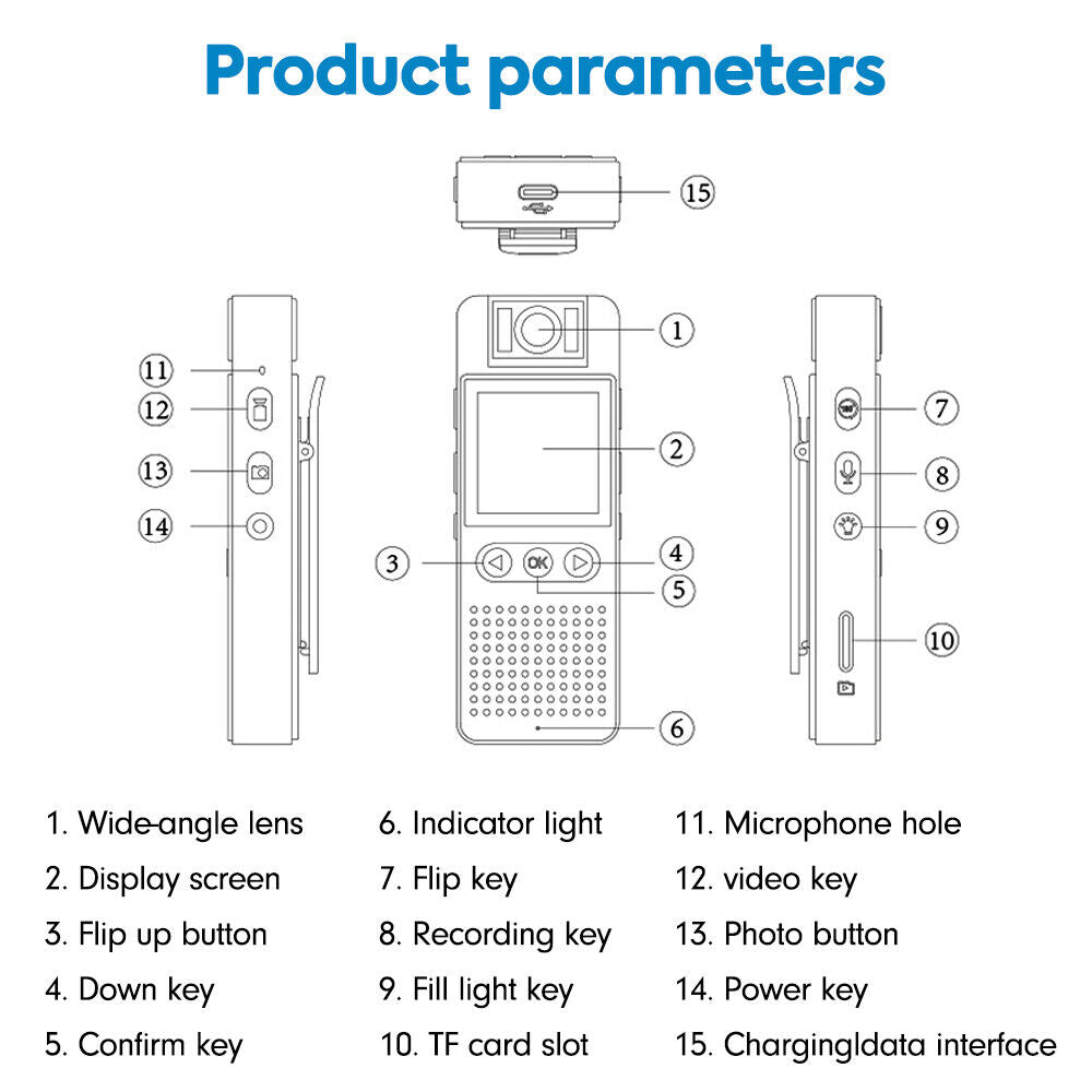 4, 7 HR Battery life 3 ways to Replay: The Body Camera with Equipped with a 1400 mAh rechargeable battery, that could last almost 6-7 HR working time