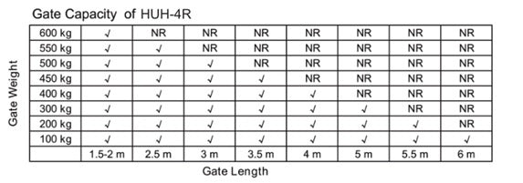 Maximum width of each gate: 6.0m (supporting a 100kg gate)