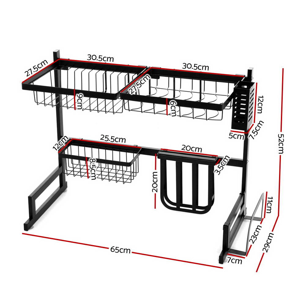 2-Tier 65cm Stainless Steel Kitchen Shelf Organizer Dish Drying Rack Over Sink