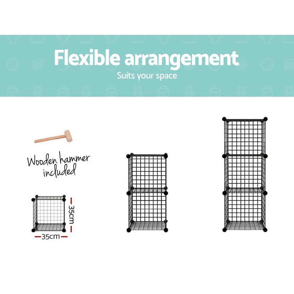 Versatility to the max. Our unique 24-cube mesh cabinet is a practical combination of style, form and function to suit any space. Each 35cm x 35cm x 35cm cube allows you to store a host of collectibles, memorabilia and personal essentials easily. Odd shape room or limited space? No worries as the cubes can be re-arranged, stacked up and re-configured to suit your preference. Better still, it is easy to set up with the simple wooden hammer included in your purchase. With its interlocking metal mesh compartments, our cabinet is durable and sturdy with ABS connectors to keep the entire ensemble firmly in place. Not least, each cube can also hold up to 5kg in capacity.