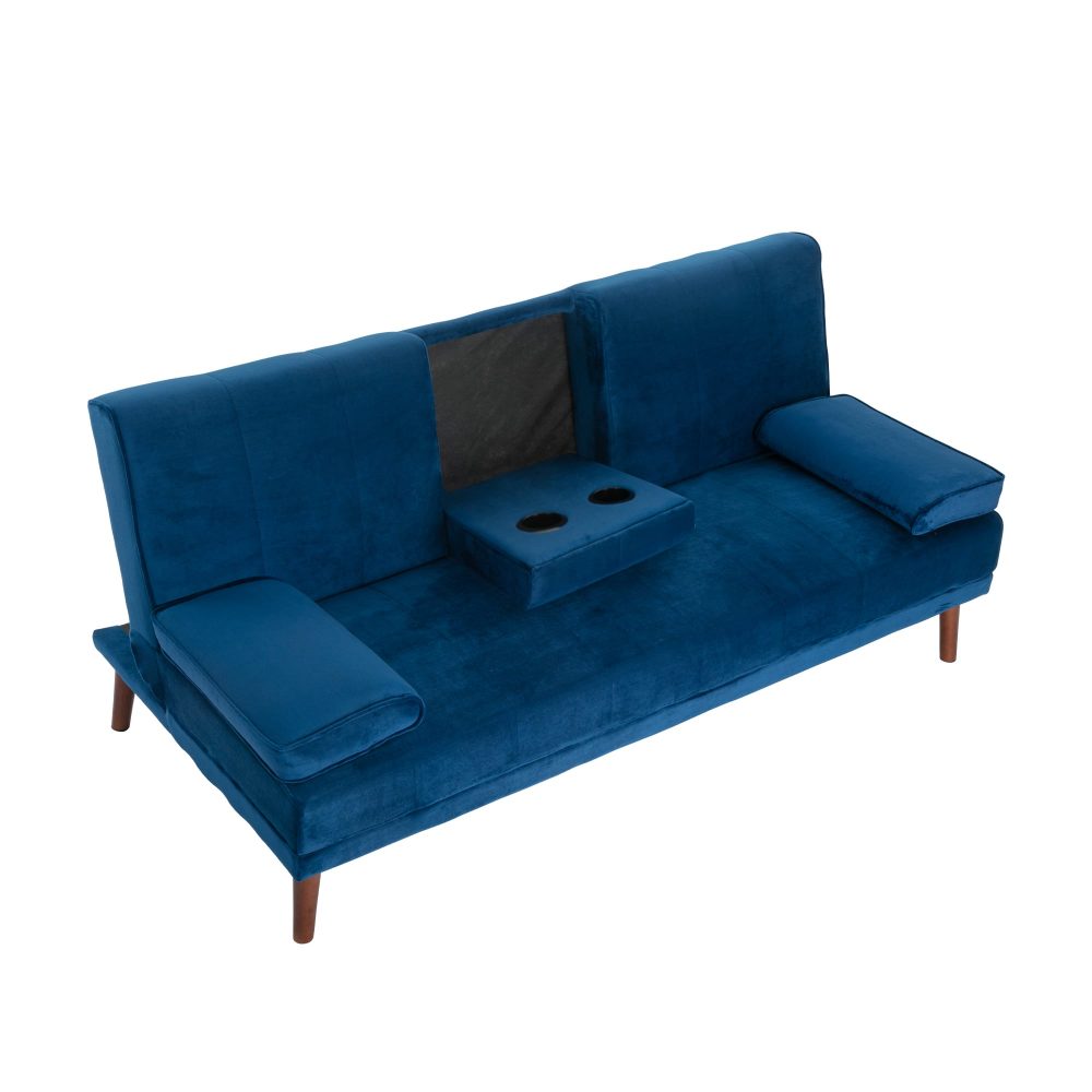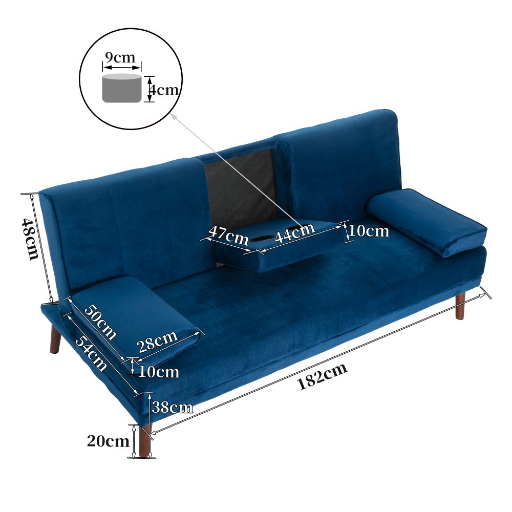 3 Seater Sofa Bed Couch with Cup Holder Velvet Navy
