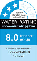 *3-star WELS rating; water efficiency of 8 Litres per minute