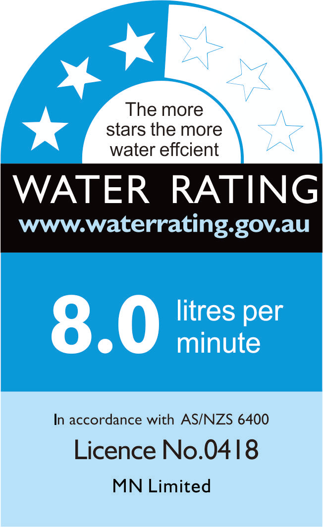 And this faucet is not just about great looks. It's Australian Certified and Watermark approved, complying with AS/NZS 3718:2005 which ensures consumers of quality plumbing products. This product is also WELS-approved with a 3-star water efficiency rating of 8 Litres per minute. That's smart for your water bill and smart for the environment.