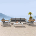Aluminum slat top coffee table offer a place to set your coffee, snacks and books. Spacious seating can have a chat with your friends sitting on this sofa set.