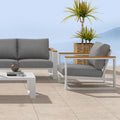 Create a stylish alfresco area with this contemporary designed lounge setting. Constructed from a powder coated aluminium with teak timber trimming