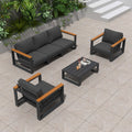 Aluminum slat top coffee table offer a place to set your coffee, snacks and books. Spacious seating can have a chat with your friends sitting on this sofa set.