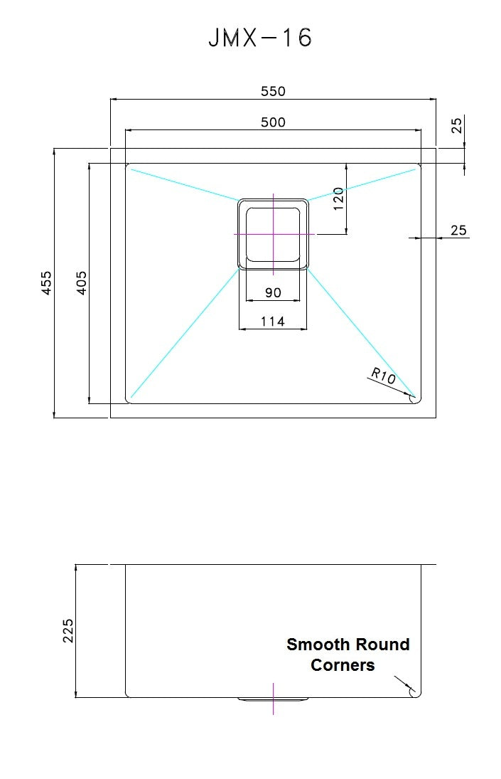 Features of this Stainless Steel Sink — 550 x 455mm: