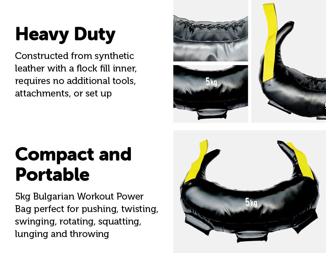 The Bulgarian bag offers everything a Kettlebell, dumbbell or barbell can offer – and much more. This ‘live’ weight can be punished in explosive, dynamic ways that are impossible with solid iron weights. Invented by Bulgarian Ivan Ivanov, a former Greco-Roman Olympic athlete and coach, the tool was first used with wrestlers. The Bulgarian bag is perfect for pushing, twisting, swinging, rotating, squatting, lunging and throwing. The intensity of working out with the Bulgarian bag goes beyond strength training. The Bulgarian bag develops speed, power and flexibility.