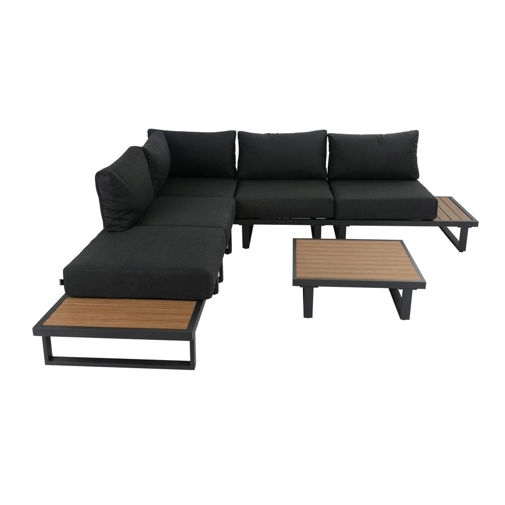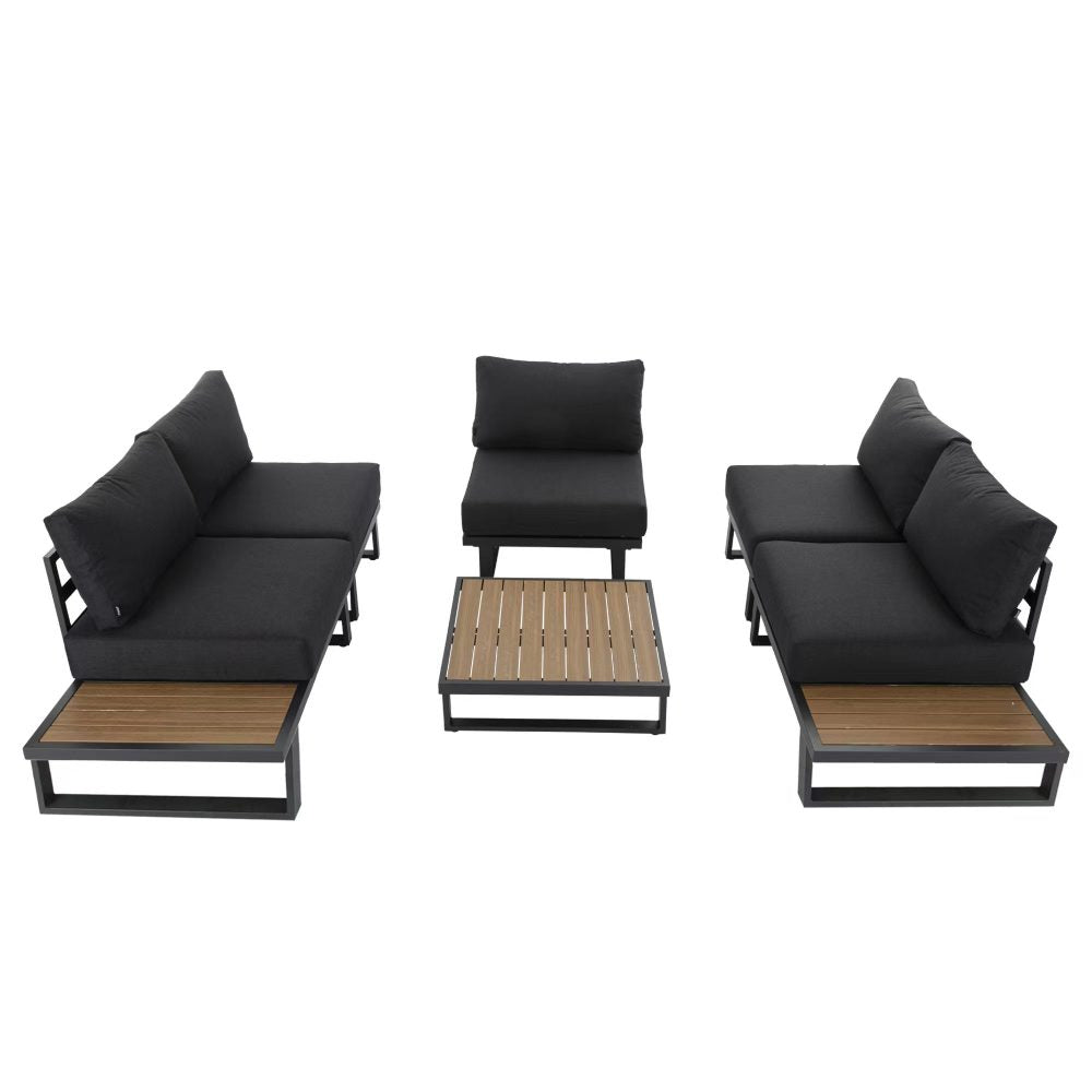 6PC Outdoor Aluminum Lounge Set with Slatted Polywood Coffee Table