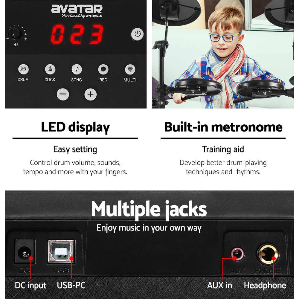 8 Piece Electric Electronic Drum Kit Drums Set Pad and Stool Kids Adults Foldable