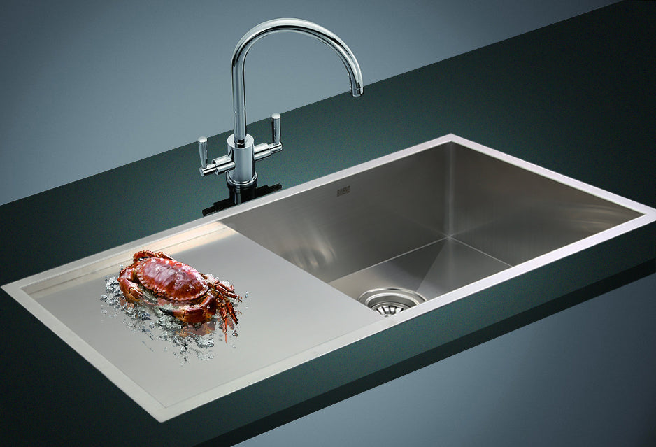 This single sink is made from hand-made 1.2mm-thick Type 304 stainless steel for a brilliant look that will last and last. It measures 960 x 450 x 200mm (L x W x D) with a 90mm drain opening. A strainer waste is included. Installation is either Undermount / Topmount-style. Undermount / Topmount brackets are included along with full installation instructions.
