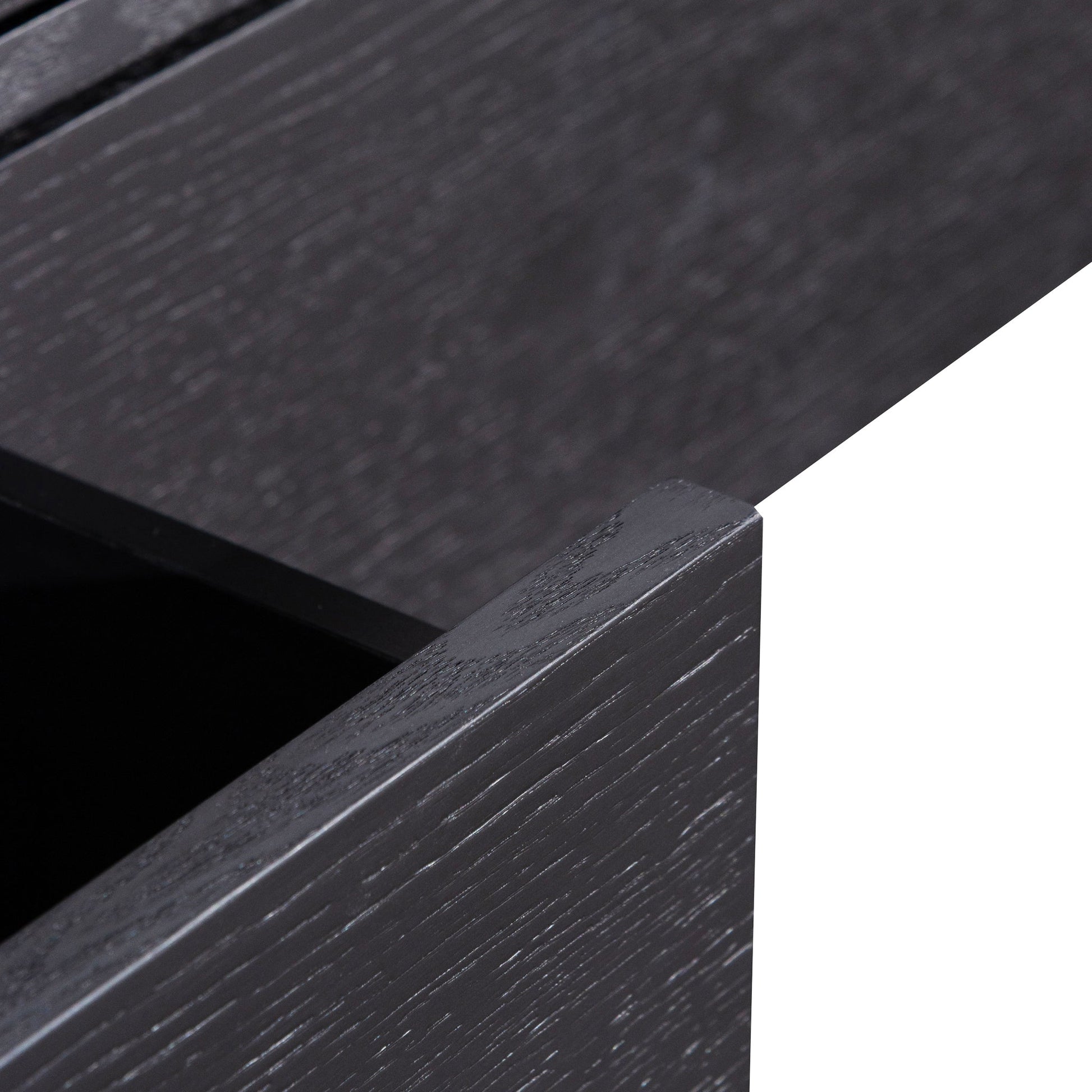 - MDF with black oak veneer construction
