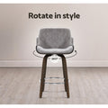 Artiss 2x Kitchen Bar Stools Wooden Bar Stool Chairs Swivel Velvet Fabric Grey