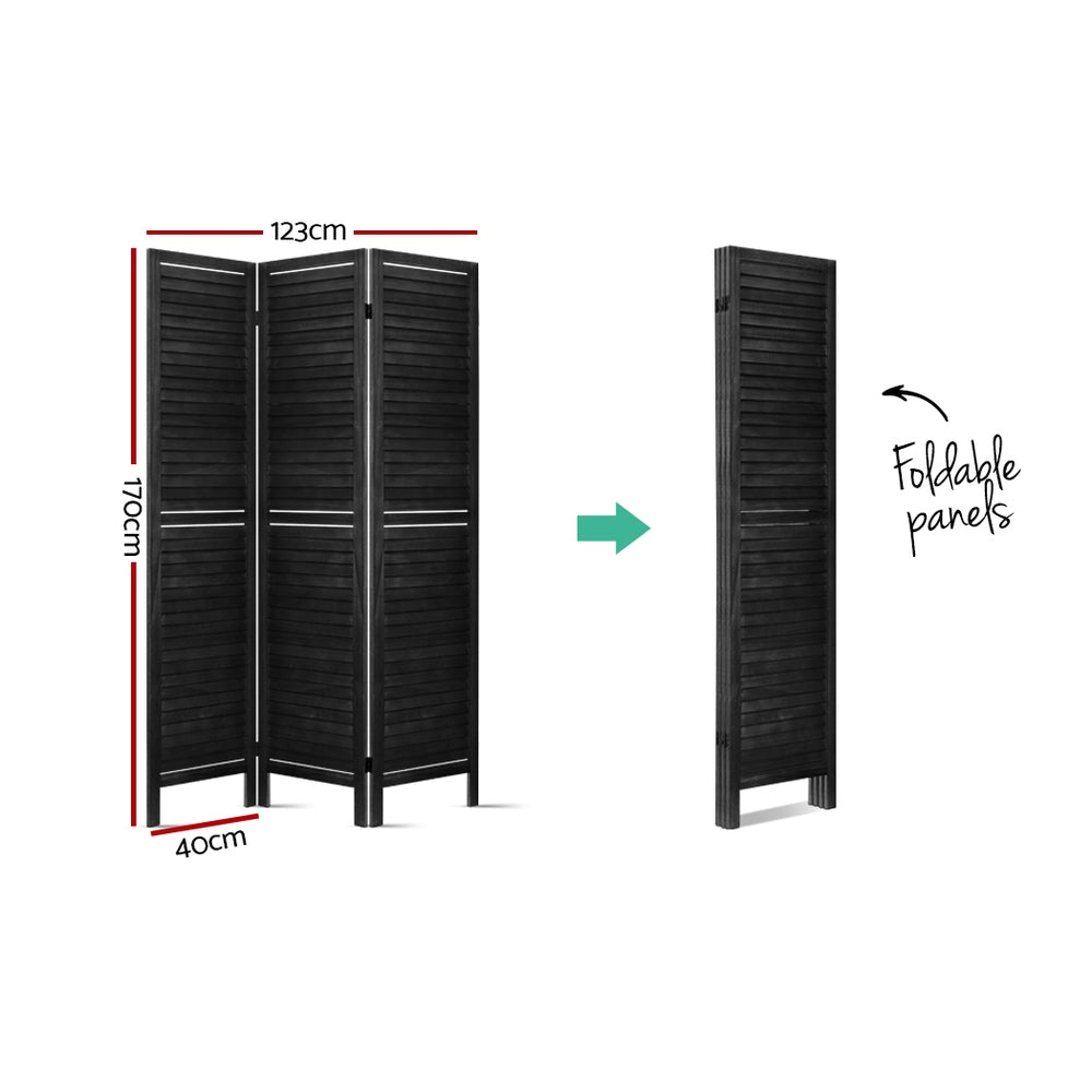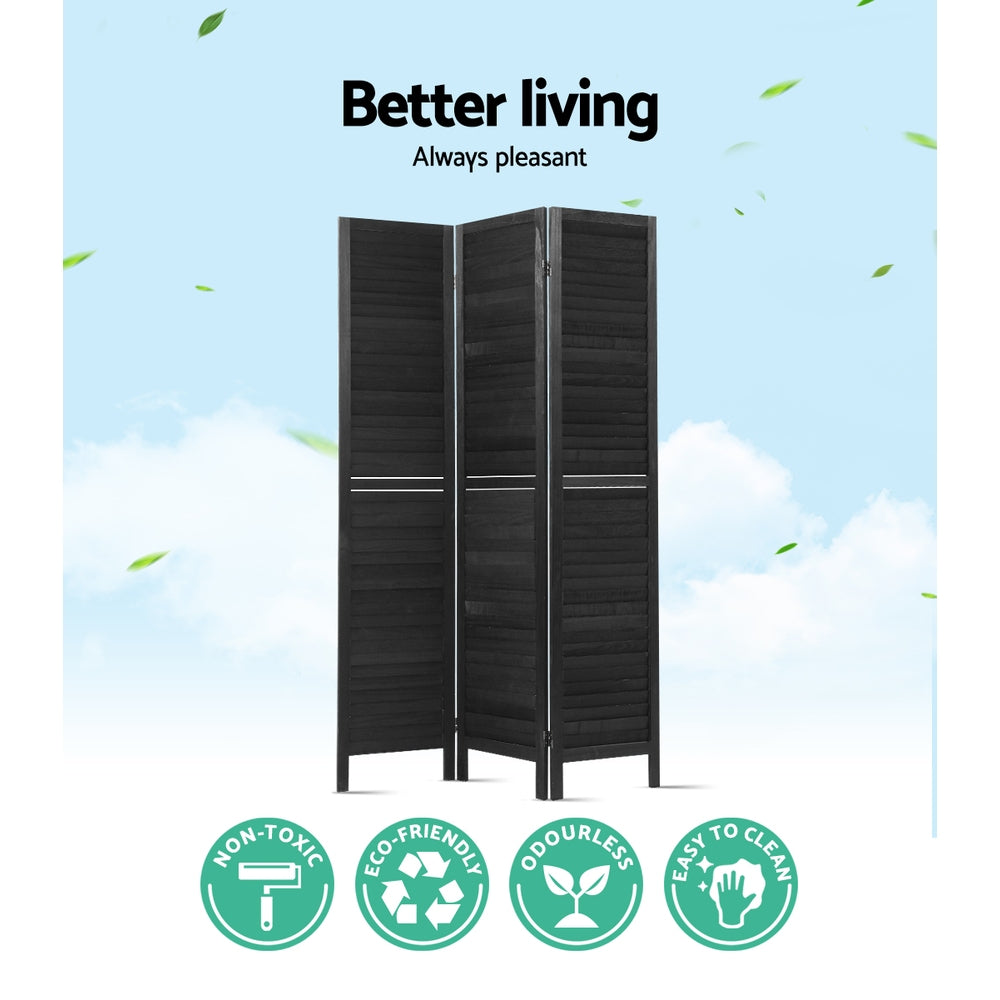 Artiss 3 Panel Room Divider Screen Privacy Wood Dividers Timber Stand Black