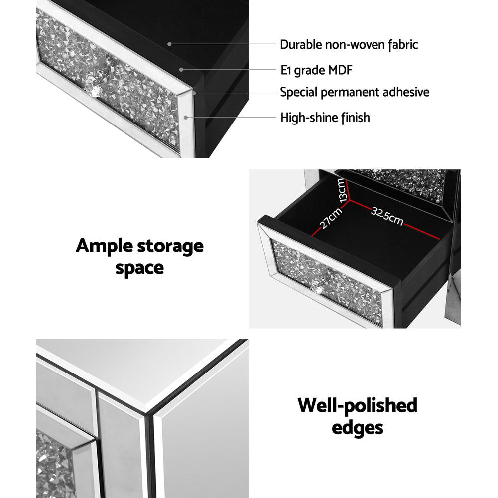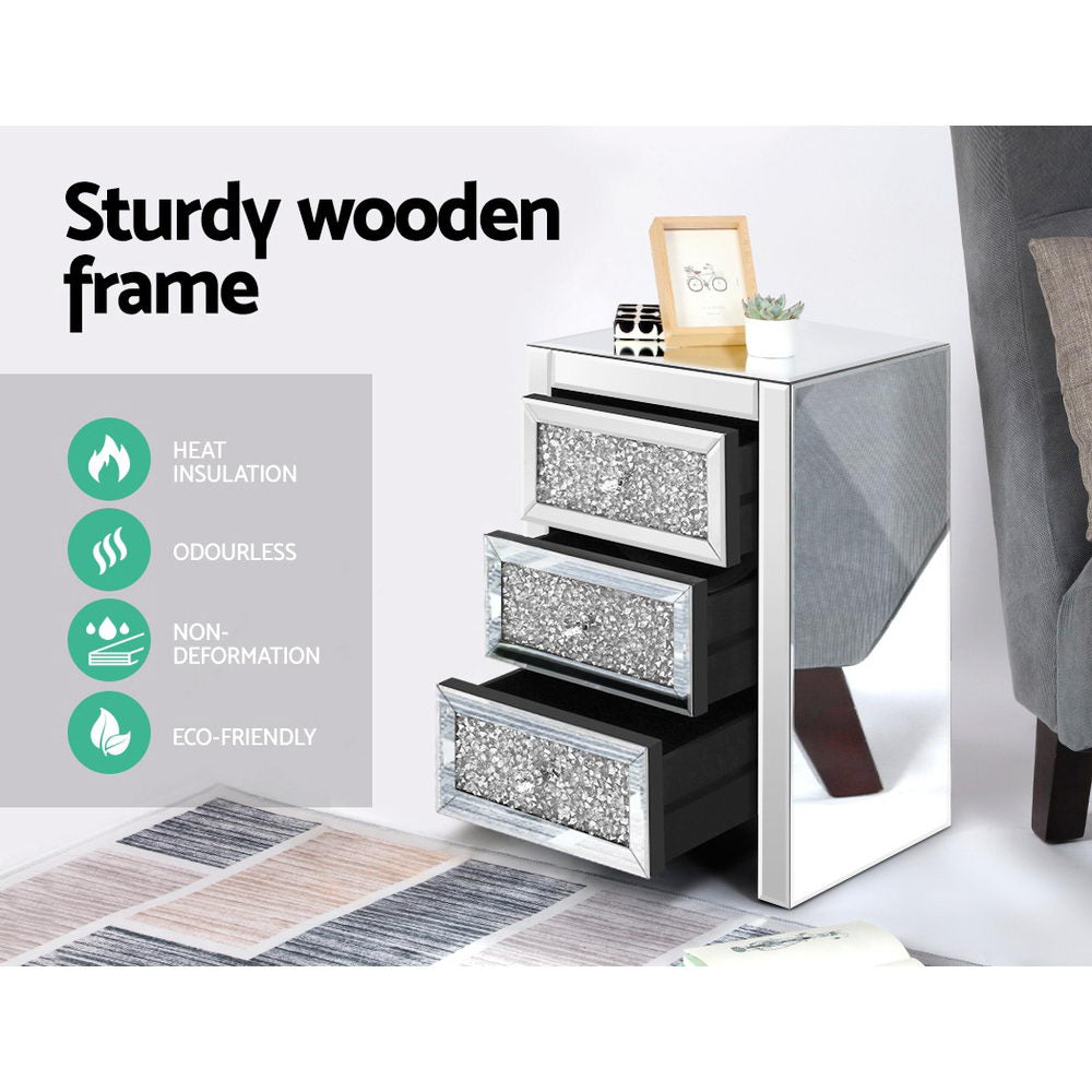 Artiss Bedside Table Nightstand Side End Tables Storage 3 Drawers Mirrored Glass Furniture