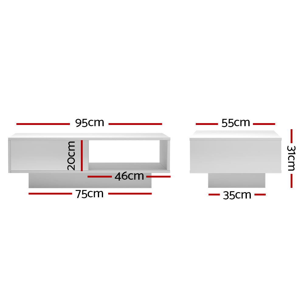 Artiss Coffee Table LED Lights High Gloss Storage Drawer Modern Furniture White