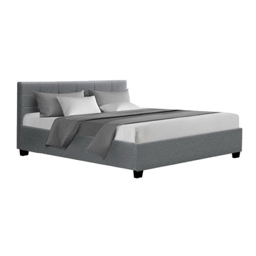 Artiss Lisa Bed Frame Fabric Gas Lift Storage - Grey Queen