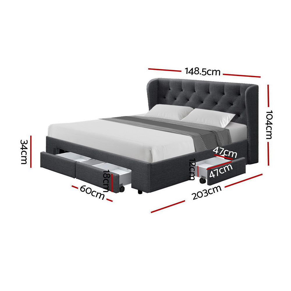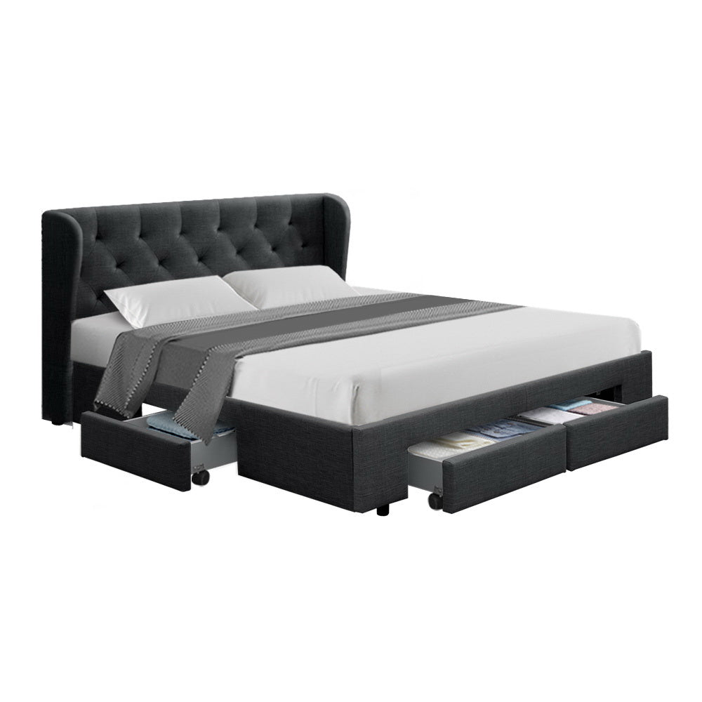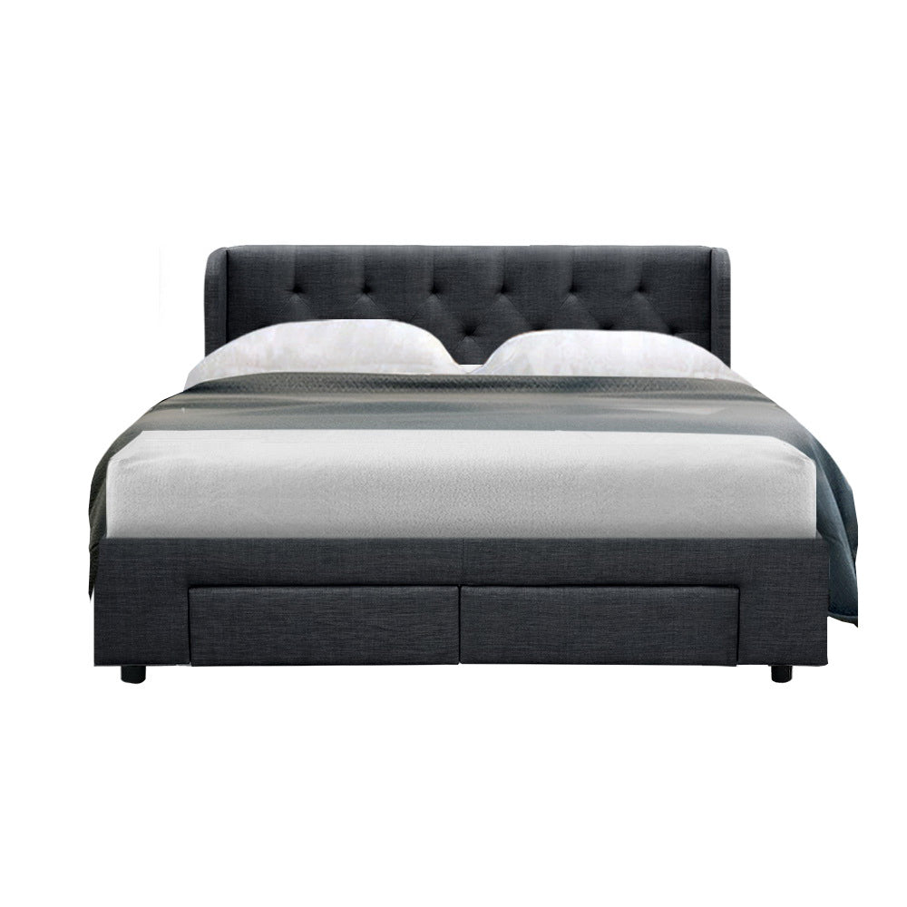 Artiss Mila Bed Frame Storage Drawers Fabric - Charcoal Double