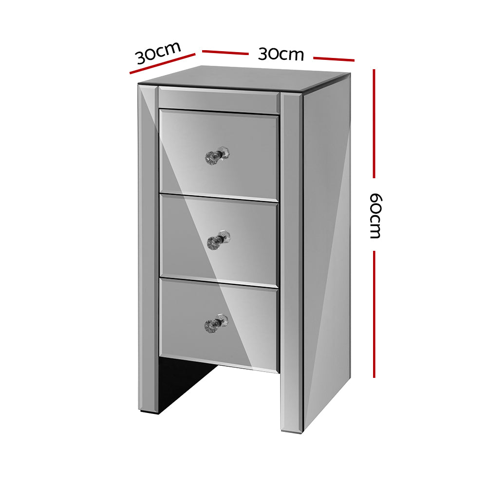 Artiss Mirrored Bedside Tables Drawers Crystal Chest Nightstand Glass Grey
