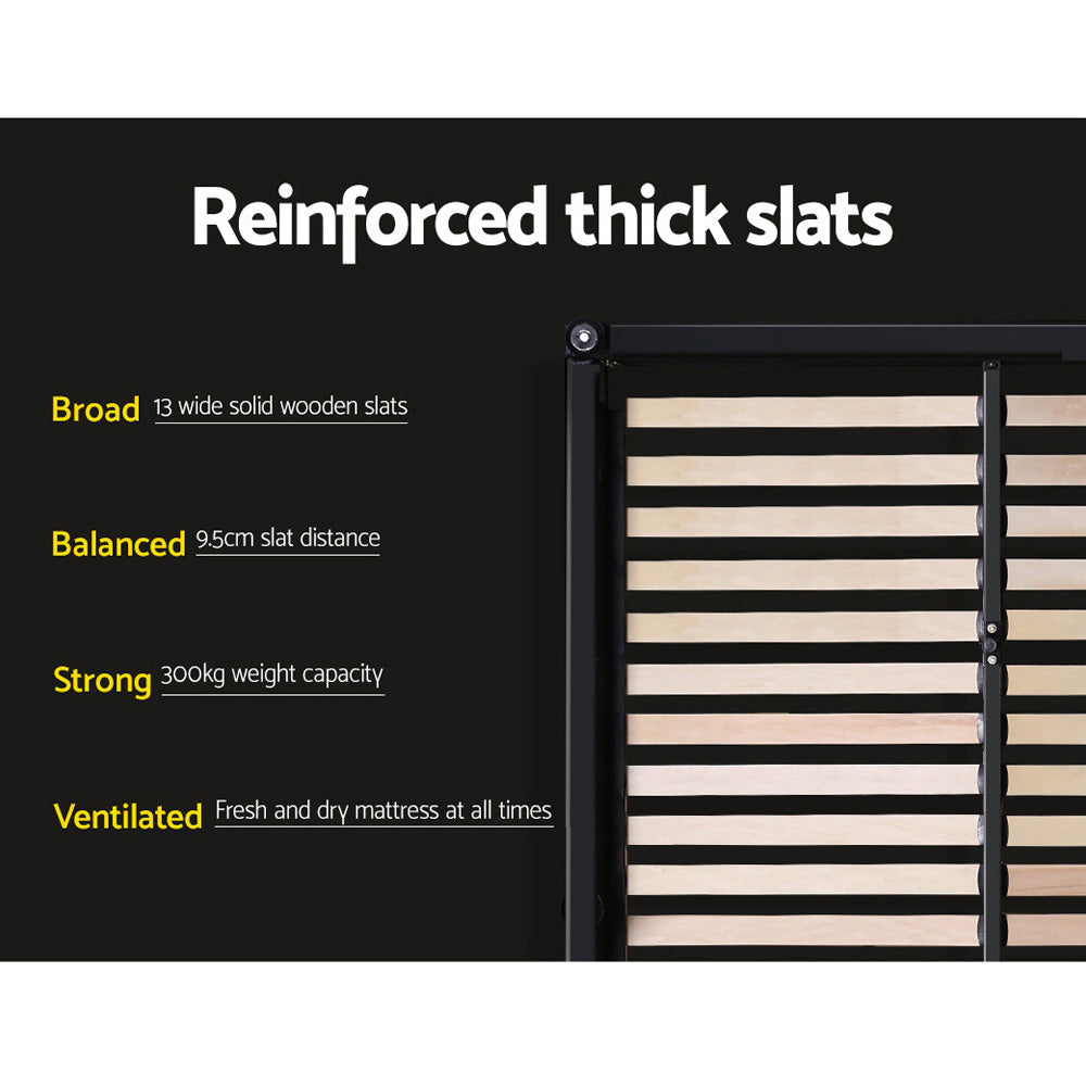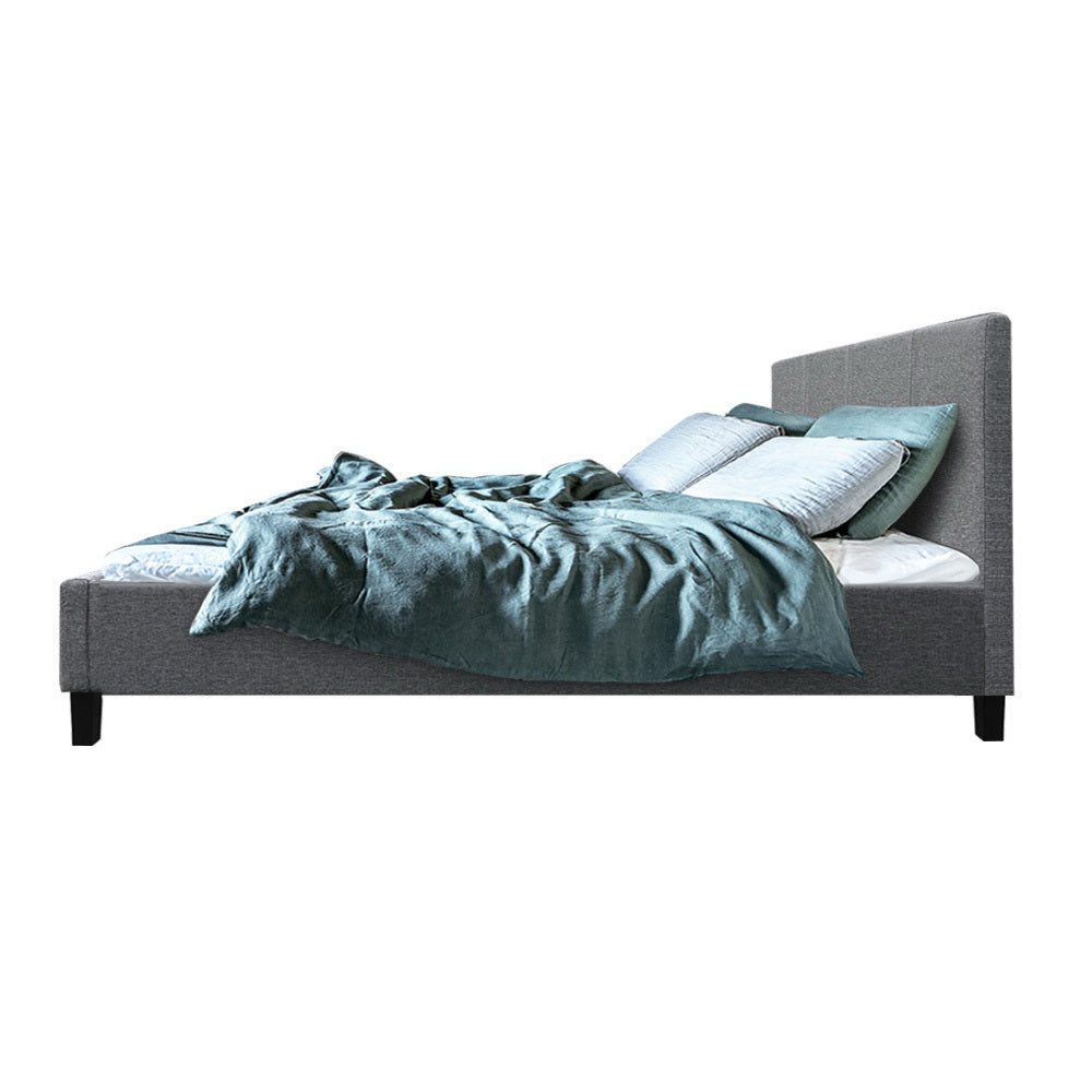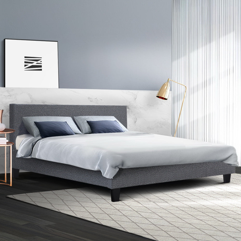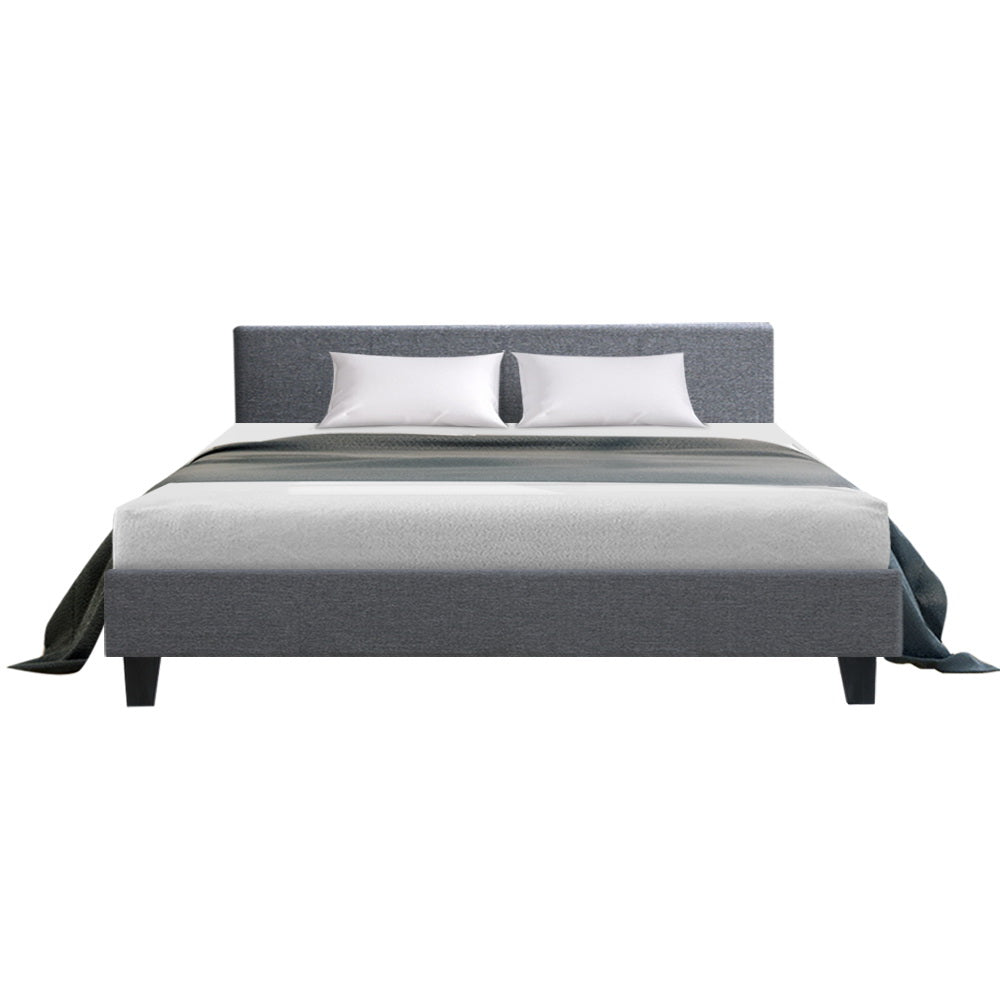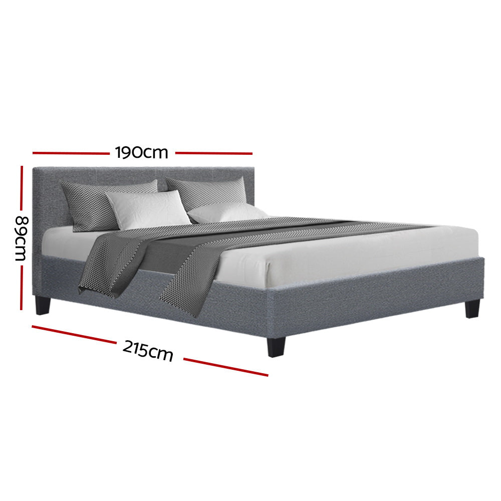 Bring a modern and trendy touch to your bedroom with our Artiss Neo Bed Frame. Wrapped in premium faux linen fabric, the bed frame is smooth to the touch and luxurious to sleep in. The bedhead provides you with a relaxing back rest when you need to sit up whilst reading a book or watching a film. You will appreciate the high-density foam that fills the bedhead as well as the rest of the bed frame for a well-padded look and feel. Within the frame, a highly flexible wooden arched slat base allows the bed to flex properly so there are no disturbances within the night if one partner tends to toss and turn. Not least, the sturdy wooden frame is also held together by heavy-duty metal connectors so that you never have to worry about the stability or durability of the bed frame so you can get that deep sleep you deserve. p>