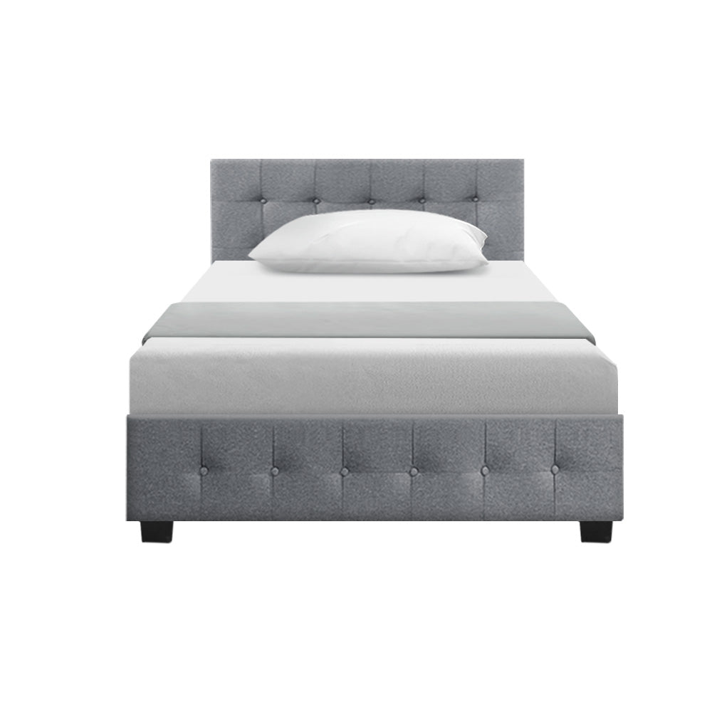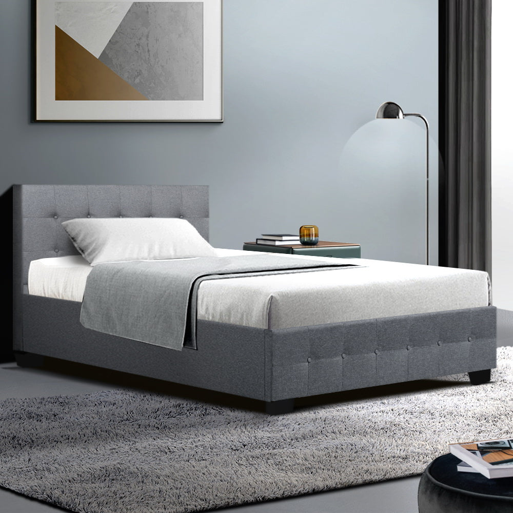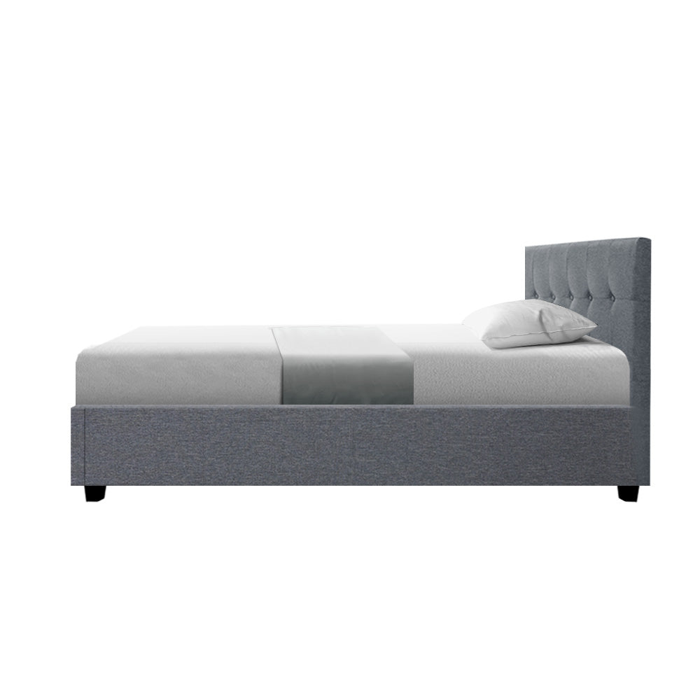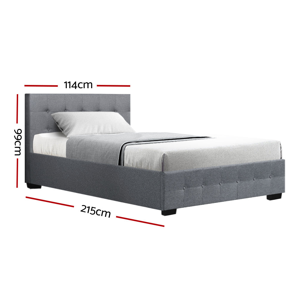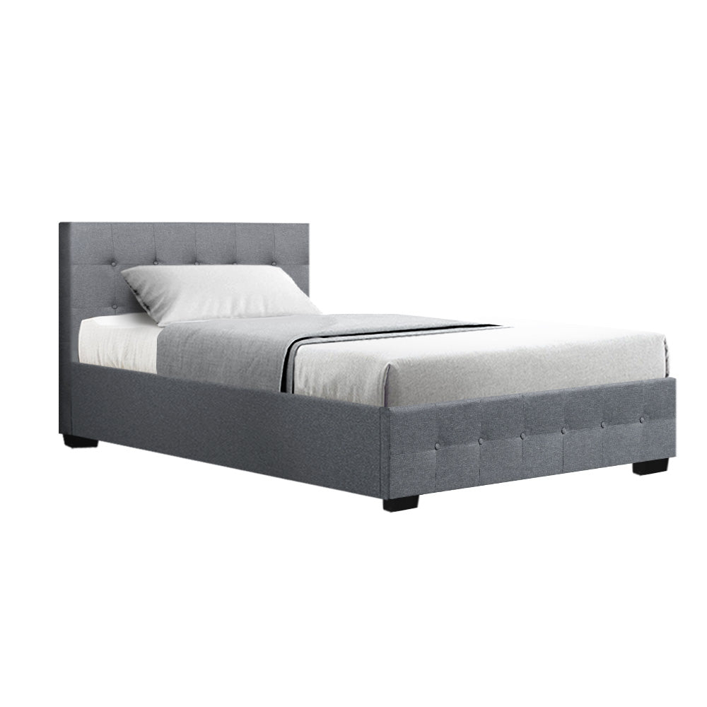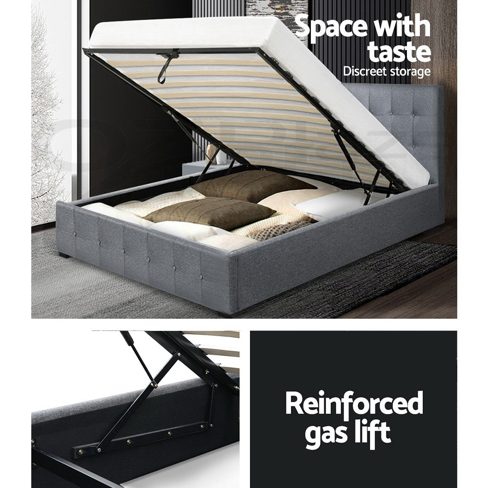 Artiss Roca Bed Frame Fabric Gas Lift Storage - Grey King Single