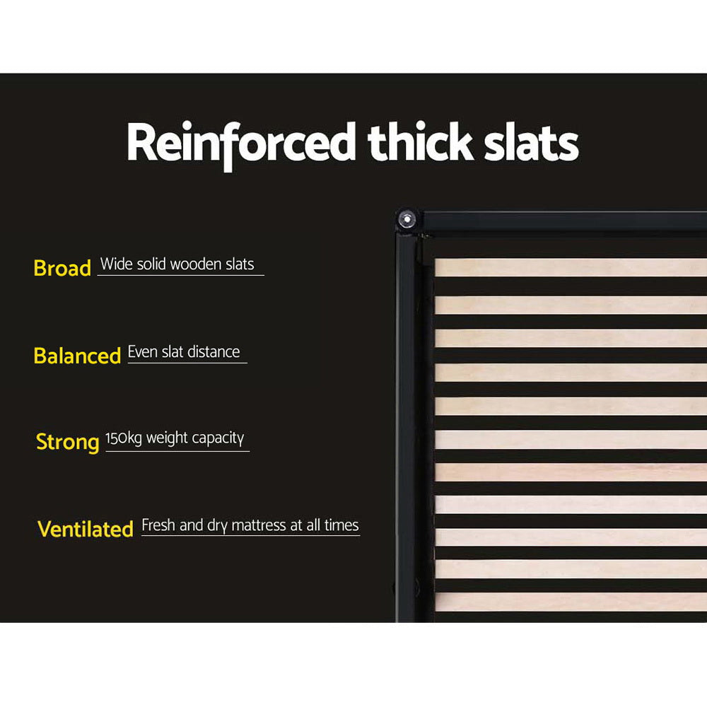 Add some va va voom to your bedroom with the Artiss Roca bed frame! Generously padded with supple foam and upholstered in premium faux linen fabric, this bedframe is a joy to your senses. The strong steel frame with high grade steel centre rails, and heavy-duty connectors and arched slat base provide you with great support and security whilst you sleep. To top it off, with one easy gas lift of the bed base, the bed frame becomes an instant storage area with ample room for whichever items you wish to hide away. This bed frame is an innovative and stylish addition to your household! p>