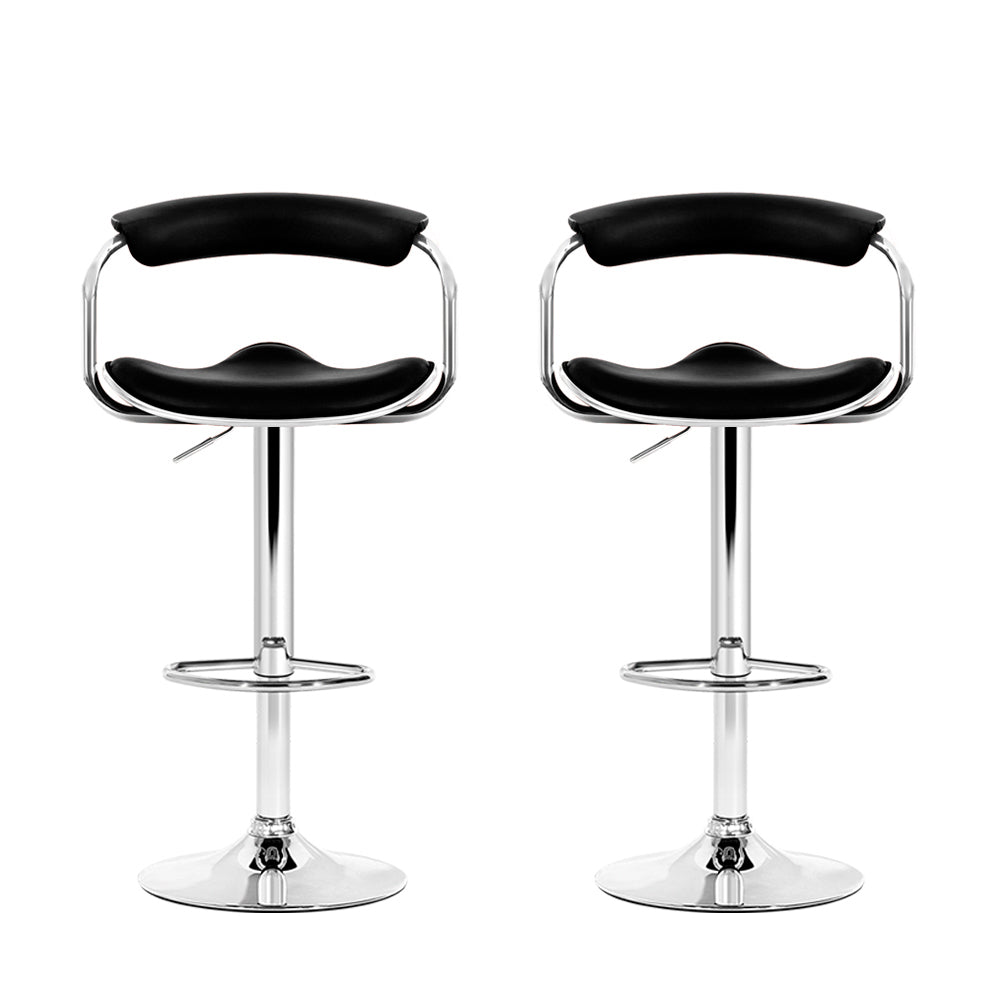 Artiss Set of 2 PU Leather Bar Stools- Chrome and Black