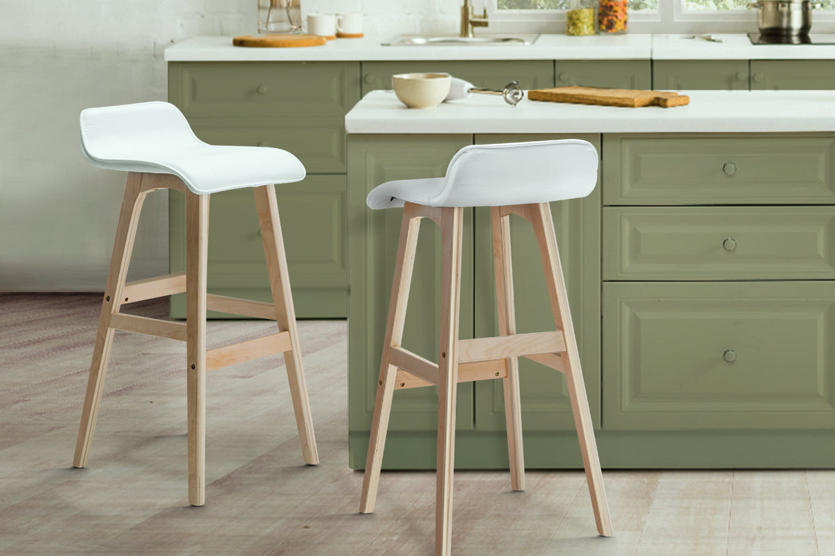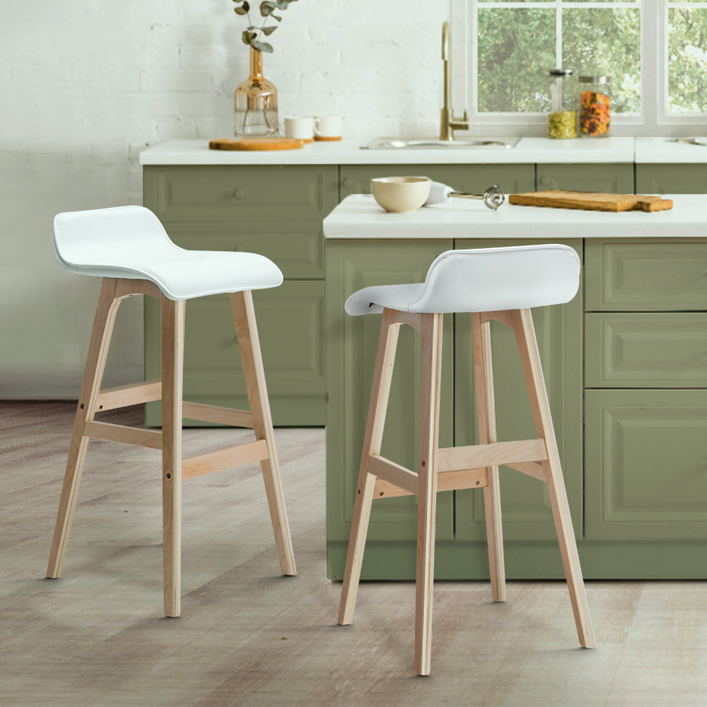 Artiss Set of 2 PU Leather Wood Wave Style Bar Stool - White