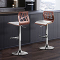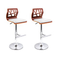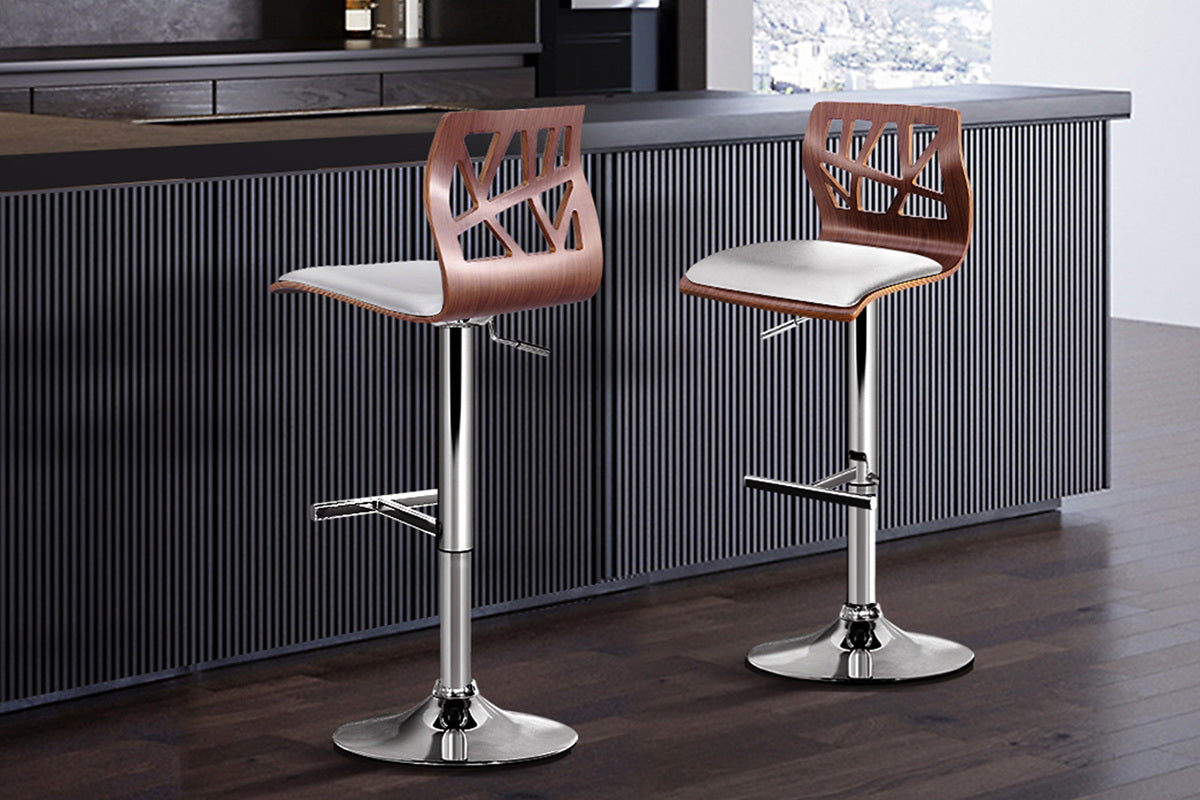 Featuring a wooden seat structure and chrome gas lift lever, the bar stool