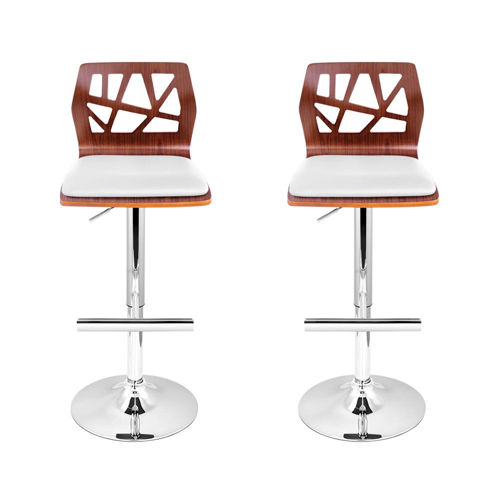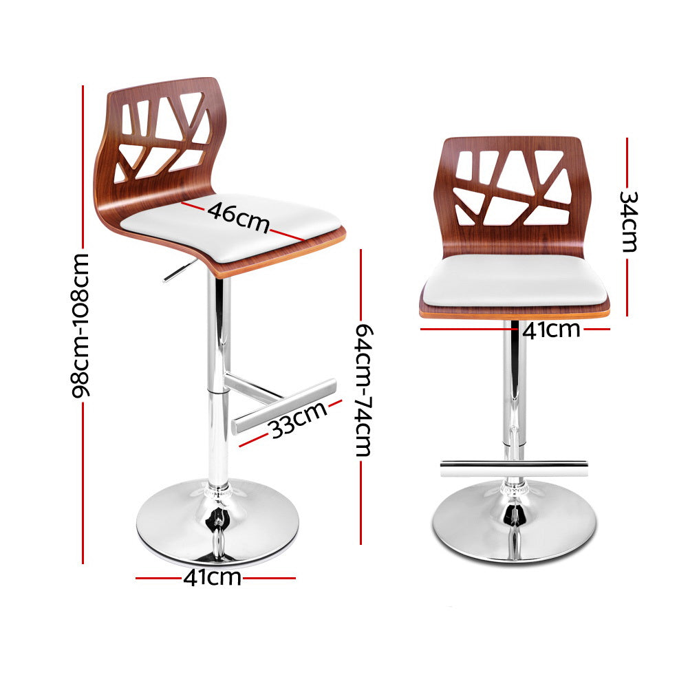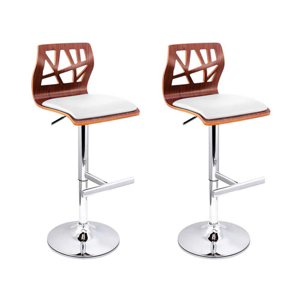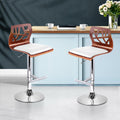 Artiss Set of 2 Wooden Gas Lift Bar Stools - White and Wood