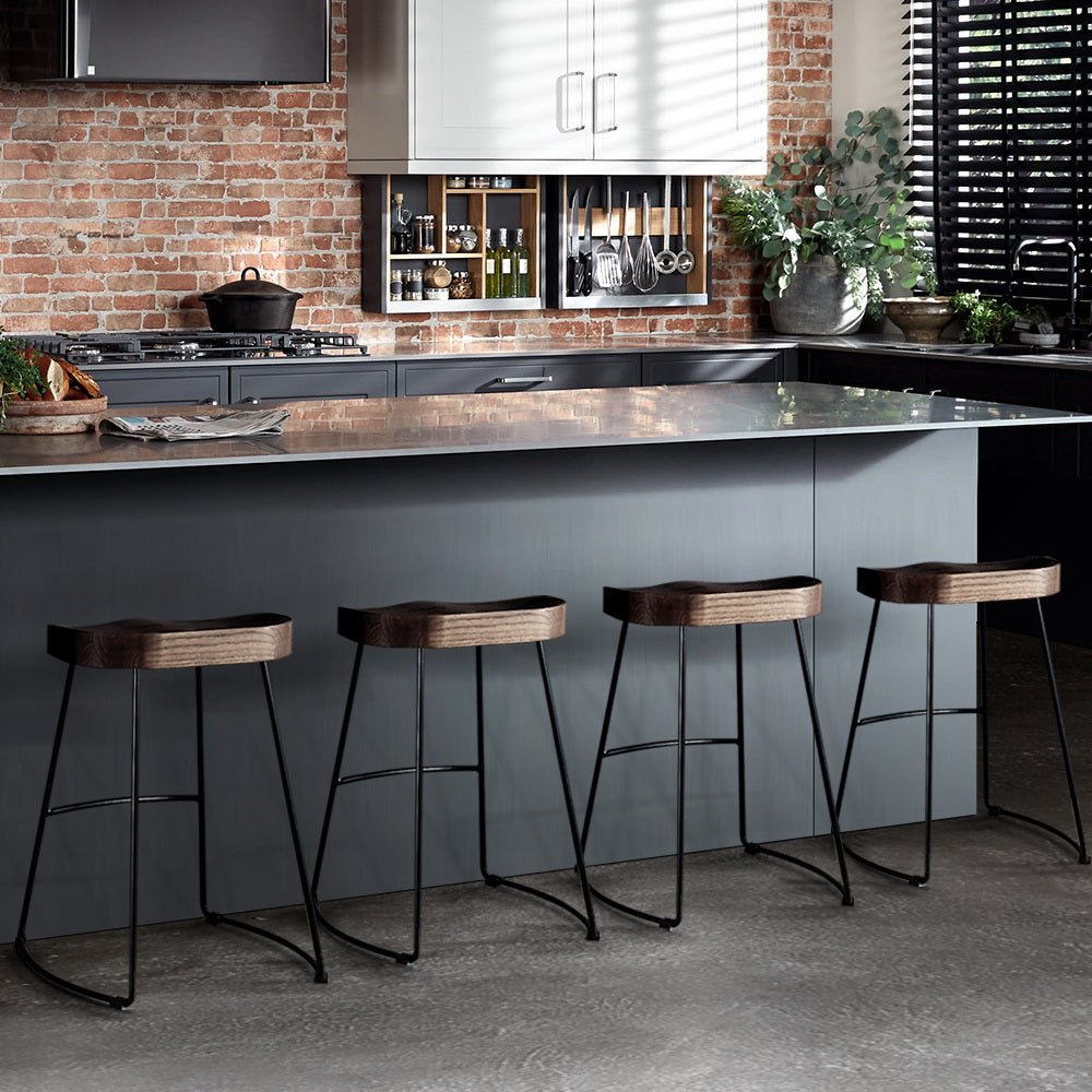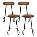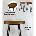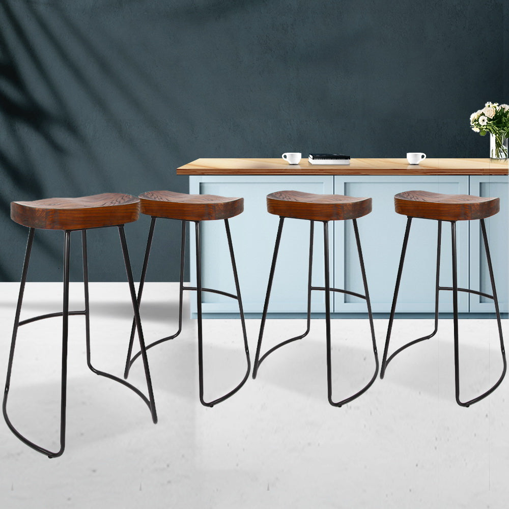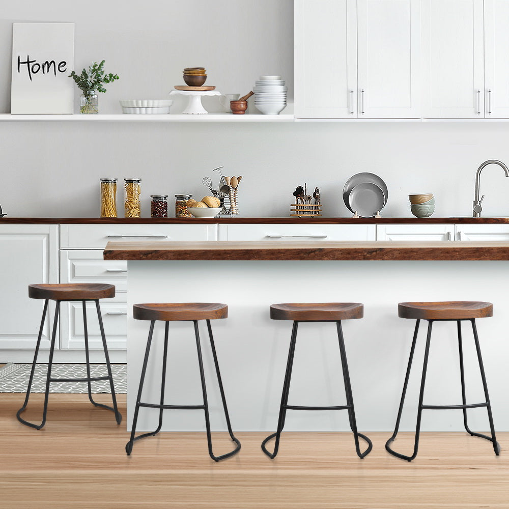 Artiss Set of 4 Elm Wood Backless Bar Stools 65cm - Black and Dark Natural
