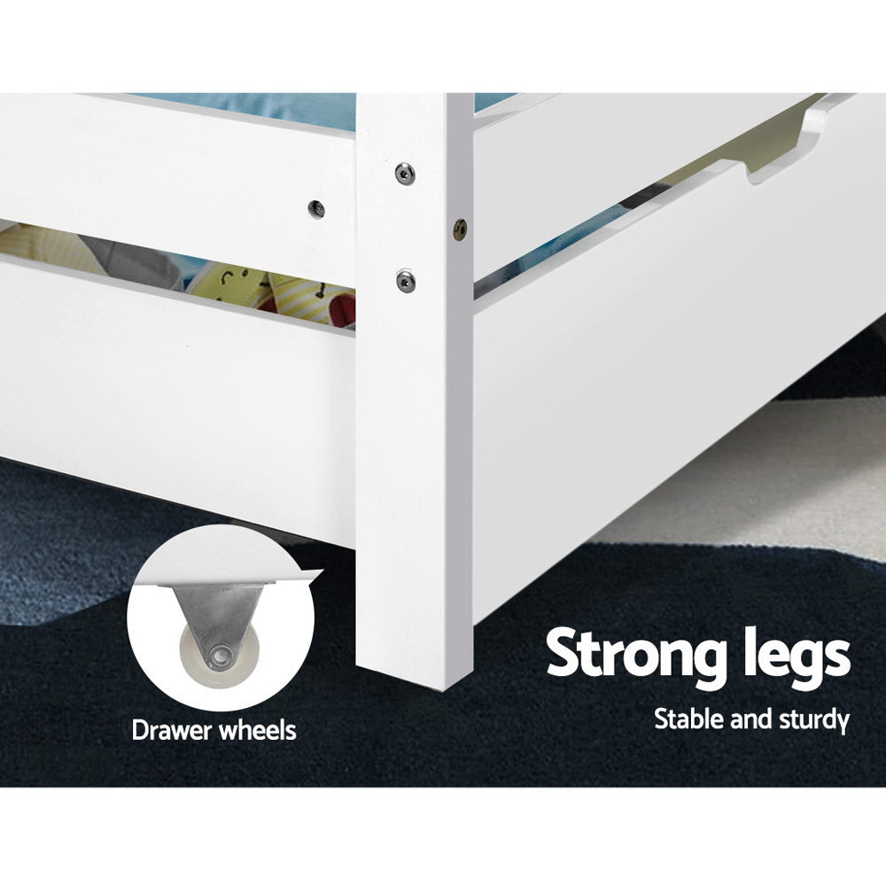 Artiss Wooden Bed Frame Single Size Mattress Base Pine Timber Platform White BALI