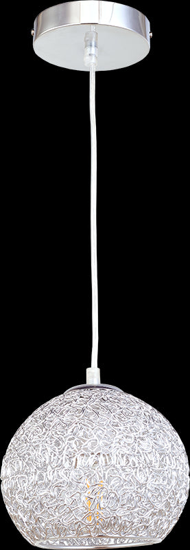 The shade's abstract, woven pattern in aluminium gives it a textural feel as the light bounces off each of the pattern's curves, providing brilliant light. It's the perfect choice for darker kitchens where a touch of brightness is welcome. Its neutral colour accents any colour palette, allowing you to change your kitchen colours without the need to change the fixture. This pendant lamp is equally at home being hung over your home's wet bar, or it can set the mood in upscale restaurants, bars, pubs, and cafes. Use it over your office desk to make a dramatic design statement. If you love a sleek, modern look, this pendant light is the perfect accessory for your space.