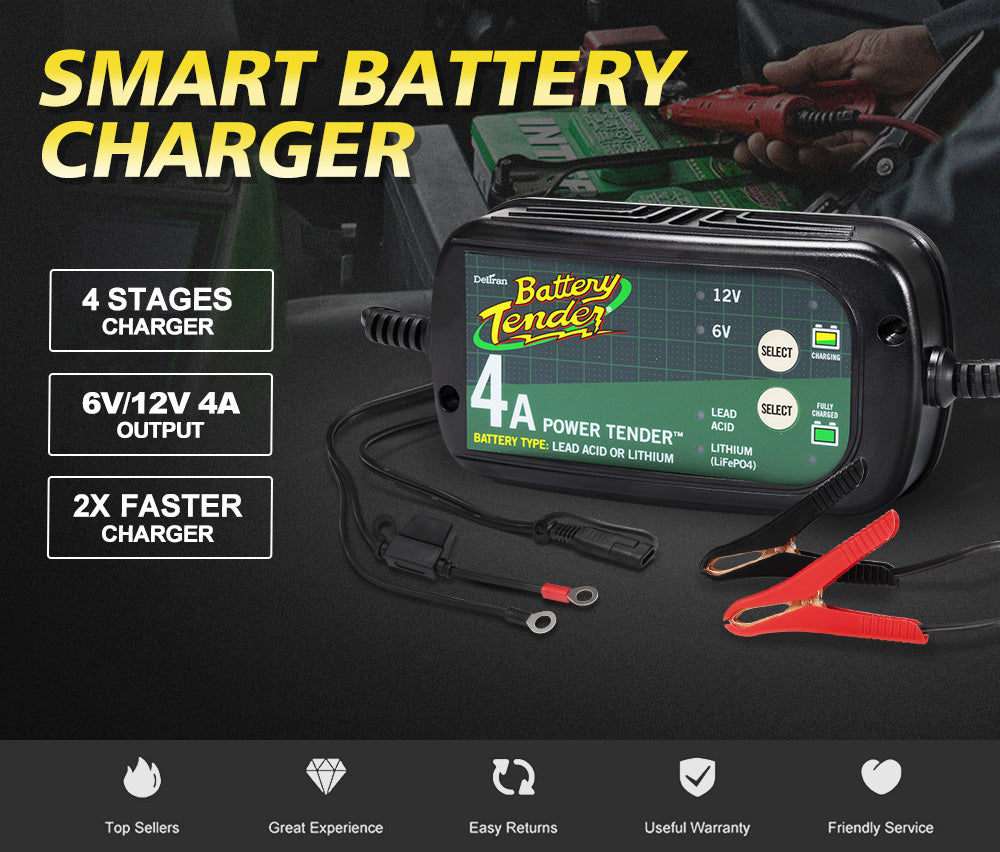 Battery Tender Smart Battery Charger 4A Trickle Automatic SLA AGM Car Truck 6V or 12V