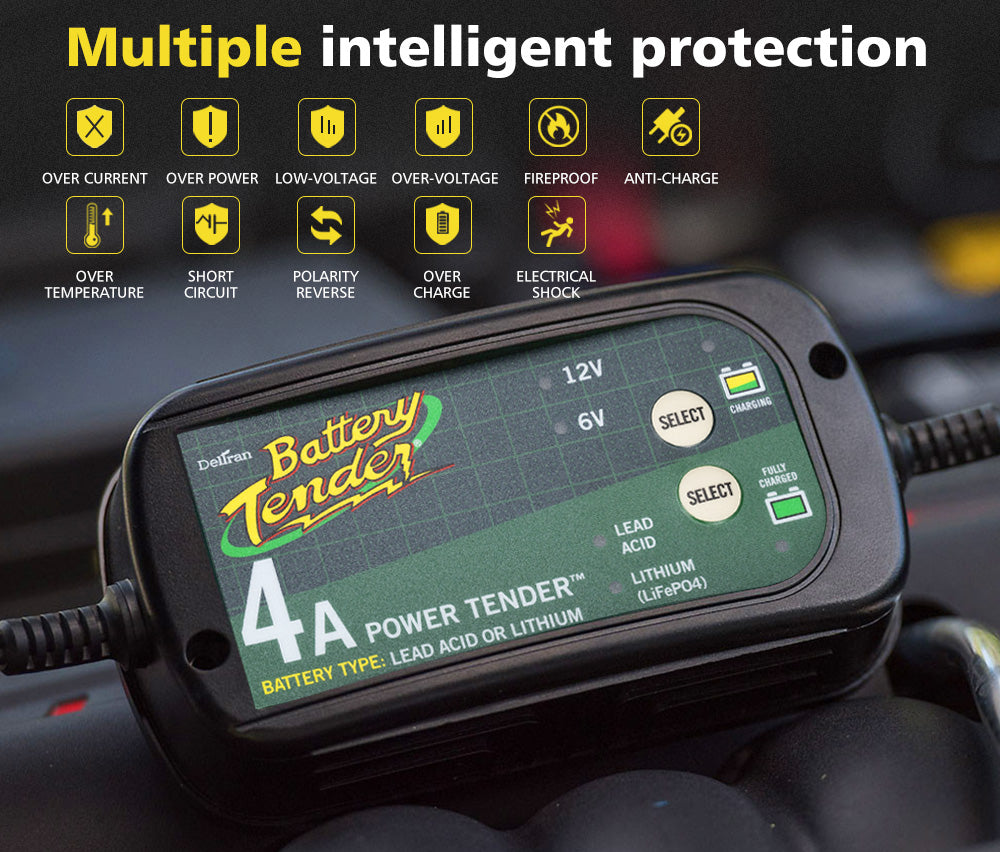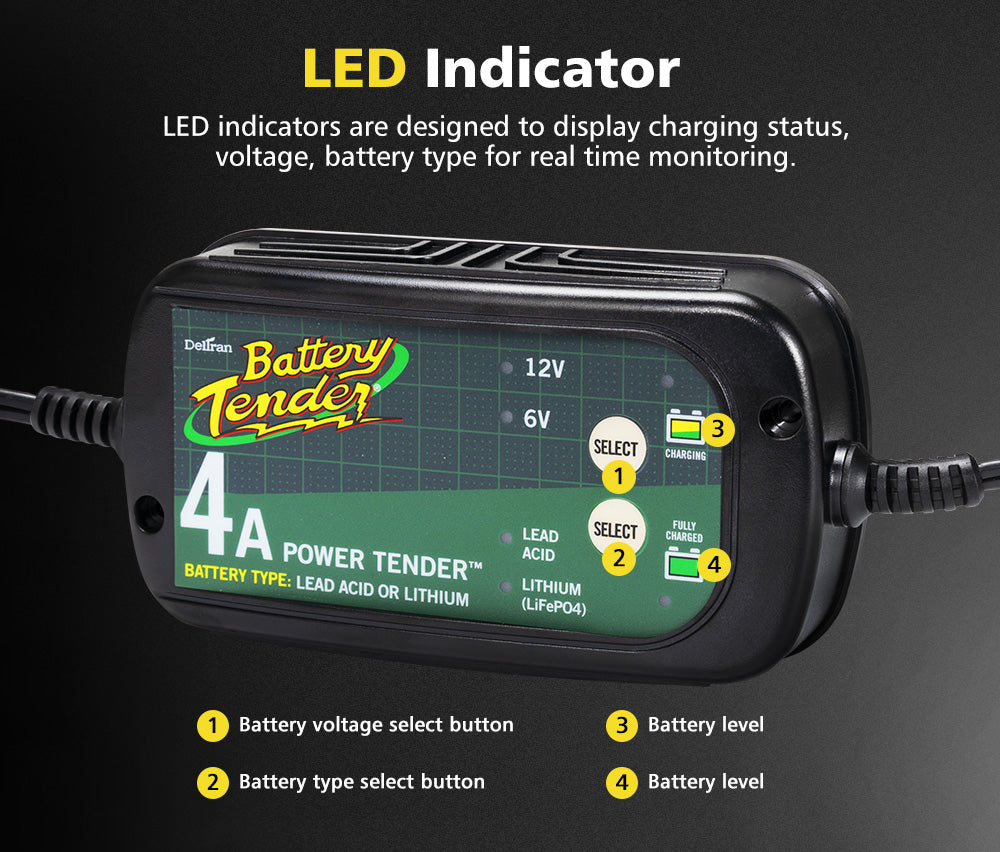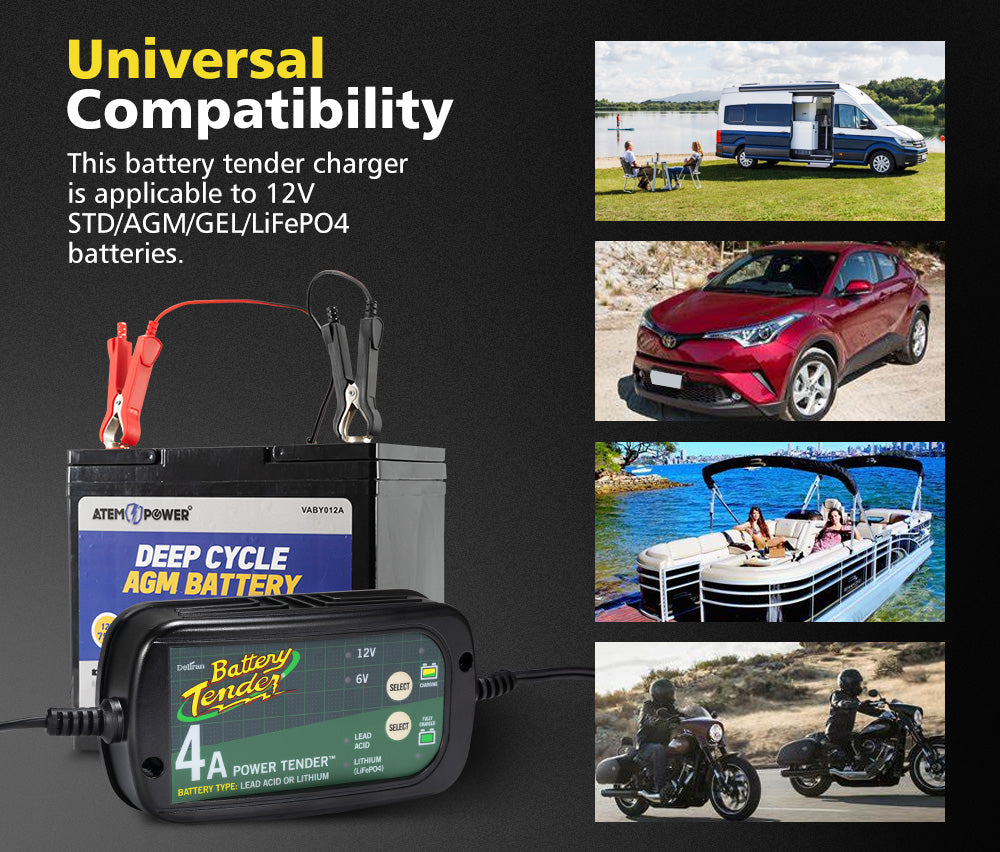 Universal Compatibility: This battery tender charger is applicable to 12V STD/AGM/GEL/LiFePO4 batteries.