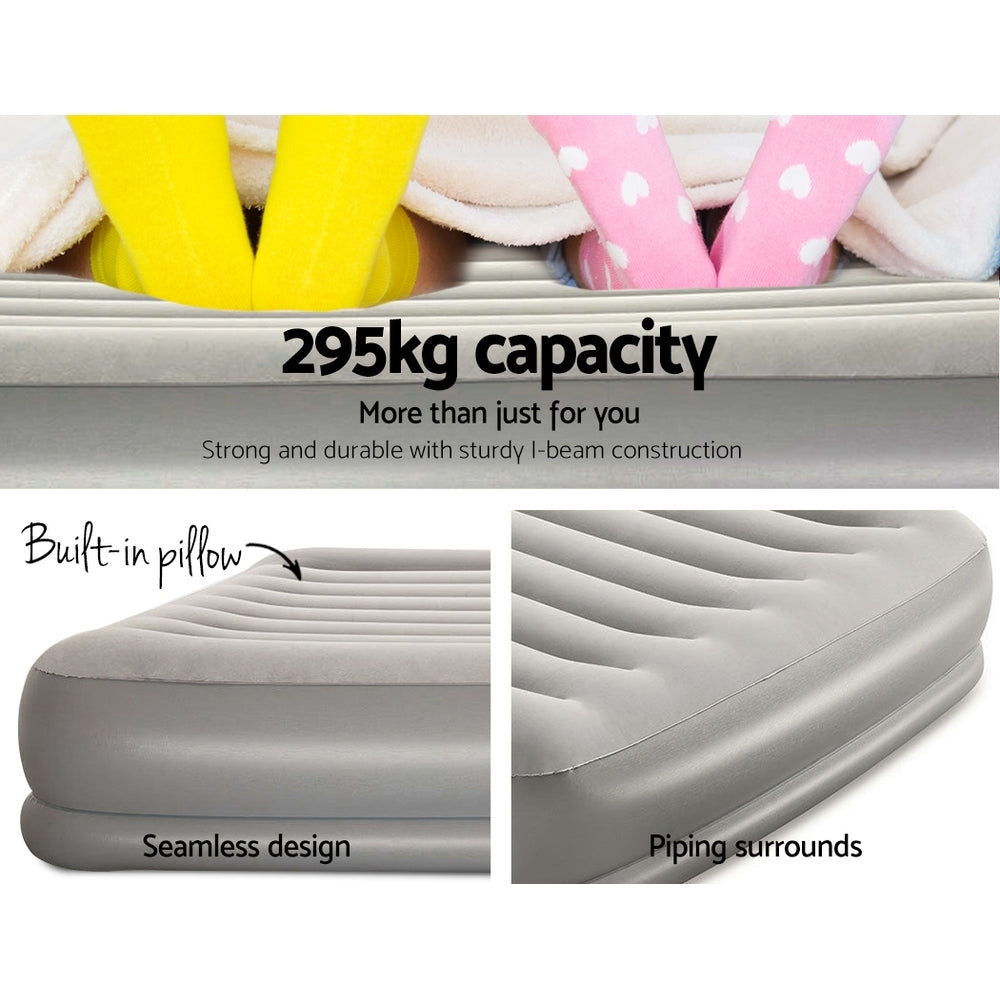 Featuring a comfortable flocked sleeping surface, the Queen size air bed provides a smooth and comfy sleep each and every night. Combined with a sturdy coil-beam construction and built-in electric pump, this quality air bed is suitable for both indoor and outdoor use. Inflates in just a minute plus, you will have an instant bed ready to go whenever the situation calls for a spare mattress. Portable, easy to store and effortless to set up, this convenient air mattress provides the perfect balance of comfort, practicality and affordability.