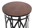 Black Round Iron Side Table with Cross Legs and Copper Finish Top