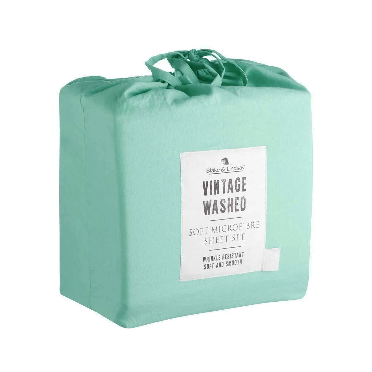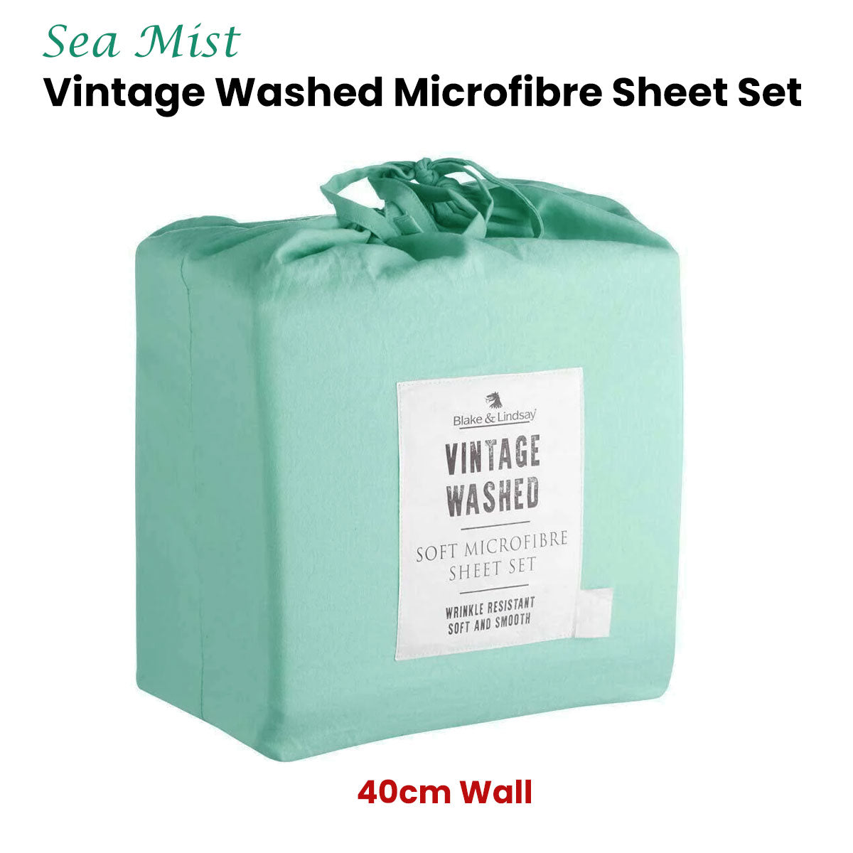 Blake & Lindsay Sea Mist Vintage Washed Microfibre Sheet Set 40cm Wall Double