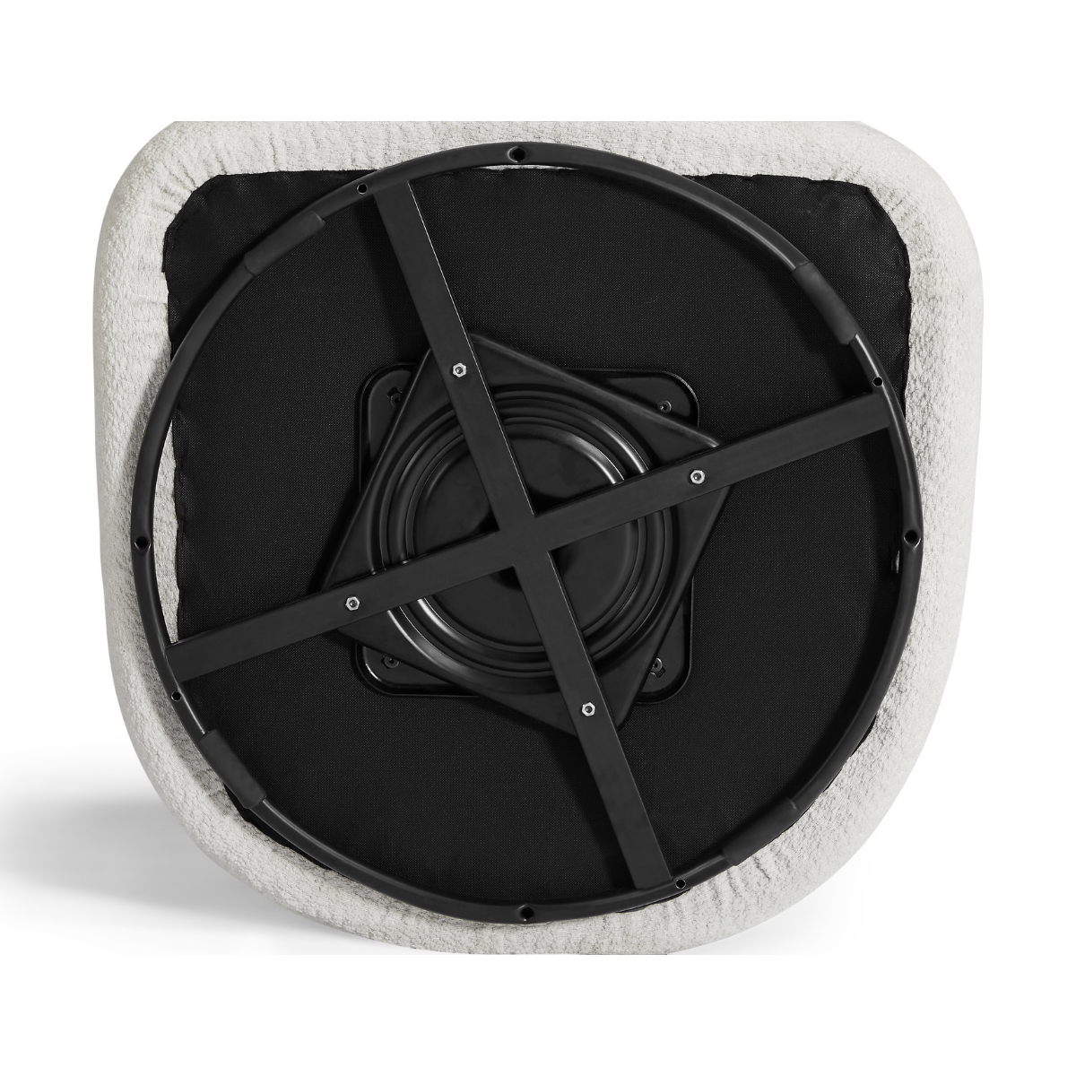 You may associate swivel chairs with a corporate-ready black leather and stainless steel combination, but the Carrie boucle swivel chair provides the same functionality under its welcoming look, allowing for users to engage and stay mobile while seating comfortably.