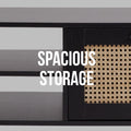 - Practical storage space with 2 shelves and large draw with natural rattan front