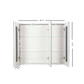 Finished in high gloss PU and made of quality 15mm MDF material, our Storage Mirror Cabinet is designed to be longlasting and durable with a touch of class. The three soft-closing doors open to lots of storage space within the cabinet with adjustable glass shelves to suit your various storage requirements for toiletries, medicine and other bathroom essentials.. Not least, the pencil-edge handles make this Storage Cabinet uniquely stylish whilst the crystal-clear mirrors reflect wide coverage with absolute clarity.