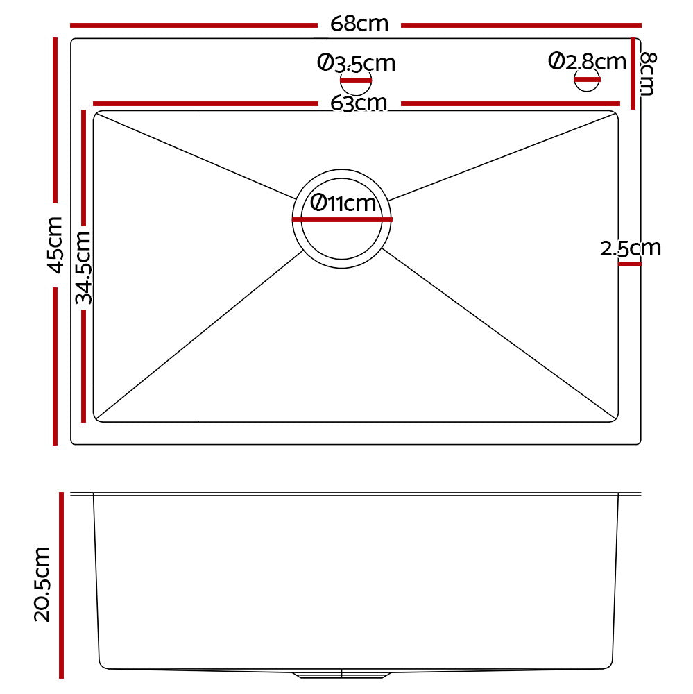 Cefito Stainless Steel Kitchen Sink 680X450MM Under/Topmount Sinks Laundry Bowl Silver